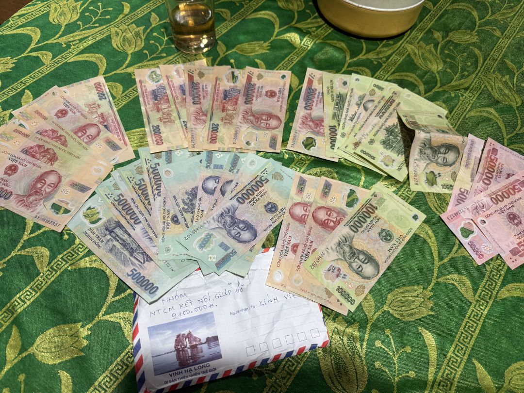 Gia đình tang gia bối rối nên cũng không báo kịp cho em để em vào thắp hương kịp thời được. Vì vậy tối nay em mới vào trao cho đại diện gia đình là em dâu và cháu trai của bà số tiền 9.100.000 đ
