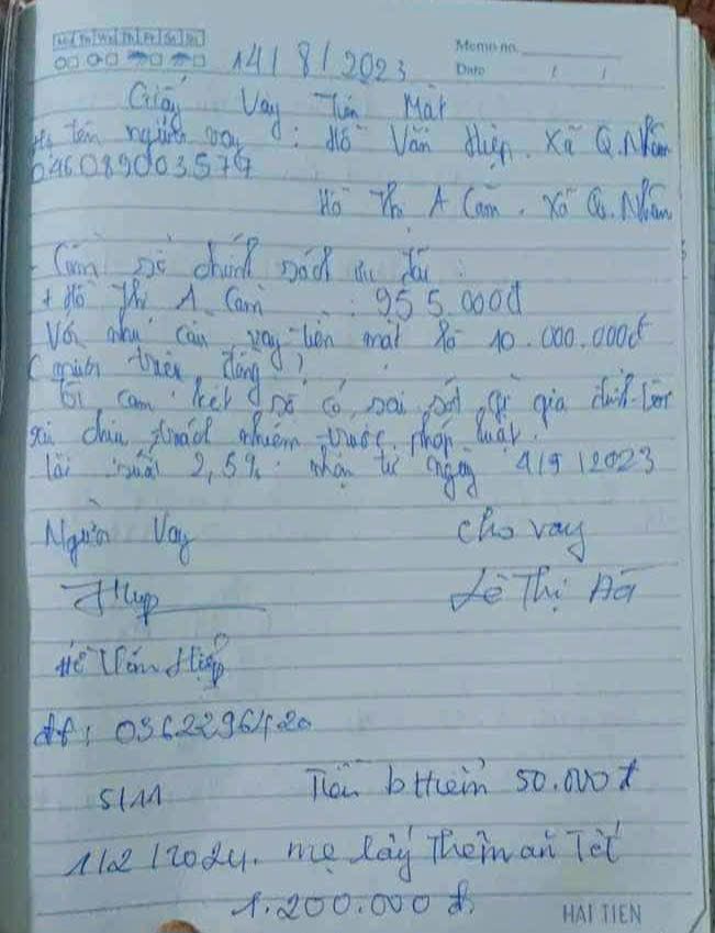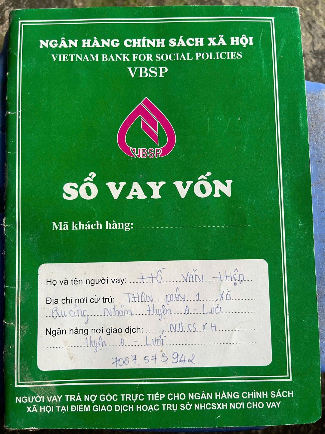Năm 2024, gia đình sửa lại nhà ở nên đã cắm lương trợ cấp của bà nội với số tiền là 15.000.000 đồng. Mỗi tháng trả ở ngoài là: 1.639.000 đồng (cả gốc và lãi) trong đó tính lãi 2,5%/tháng. Ngoài ra, để sửa nhà và hỗ trợ cho cháu Hồ Thị Lan Anh đi học Đại học, anh Hiệp có vay thêm Ngân hàng chính sách với số tiền là 92.000.000 đồng. Mỗi tháng phải trả cả gốc và lãi từ 1.000.000 đồng trở lên.