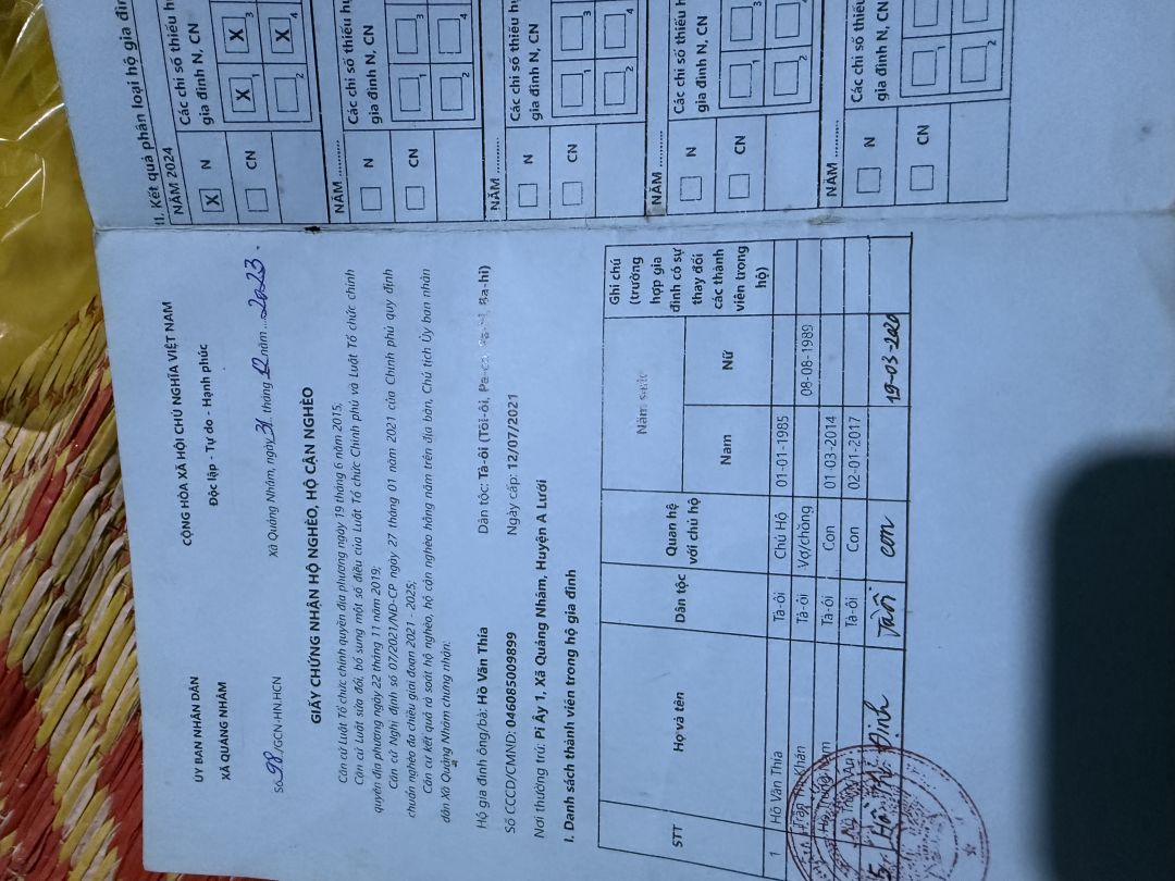Hồ Văn Thía, sinh năm 1985. vợ là Hồ Thị Khăn, sinh năm 1989, ở thôn Pi Ây 1 xã