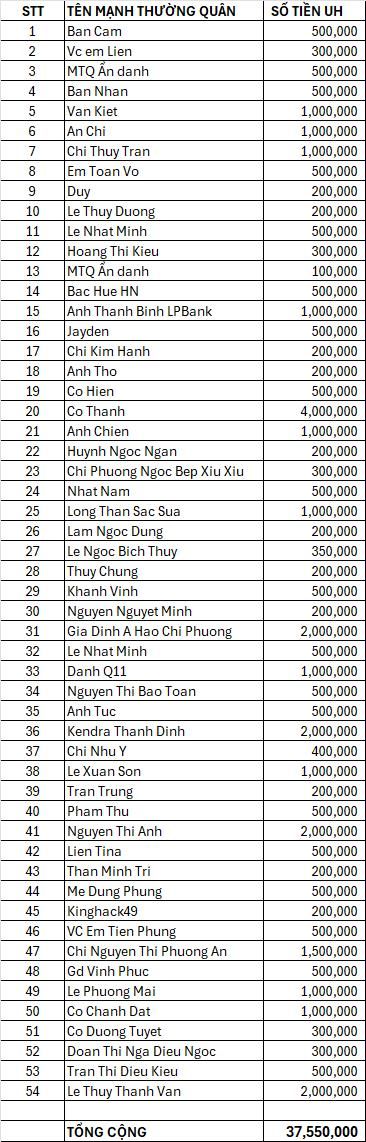 - Cô Hiền (Bình Dương) ủng hộ cho chương trình 500,000đ