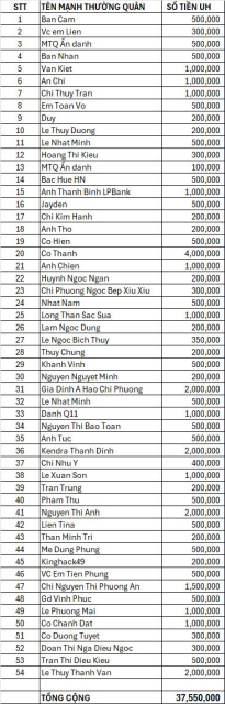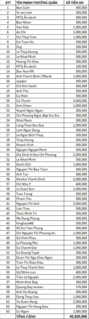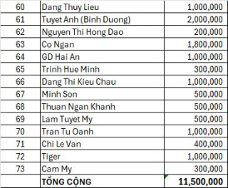 Loannguyen cập nhật ủng hộ đến hiện tại :