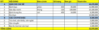 Phần chi phí cập nhật lại sau khi có 1 số khoản ủng hộ hiện vật ạ : 52,970,000đ