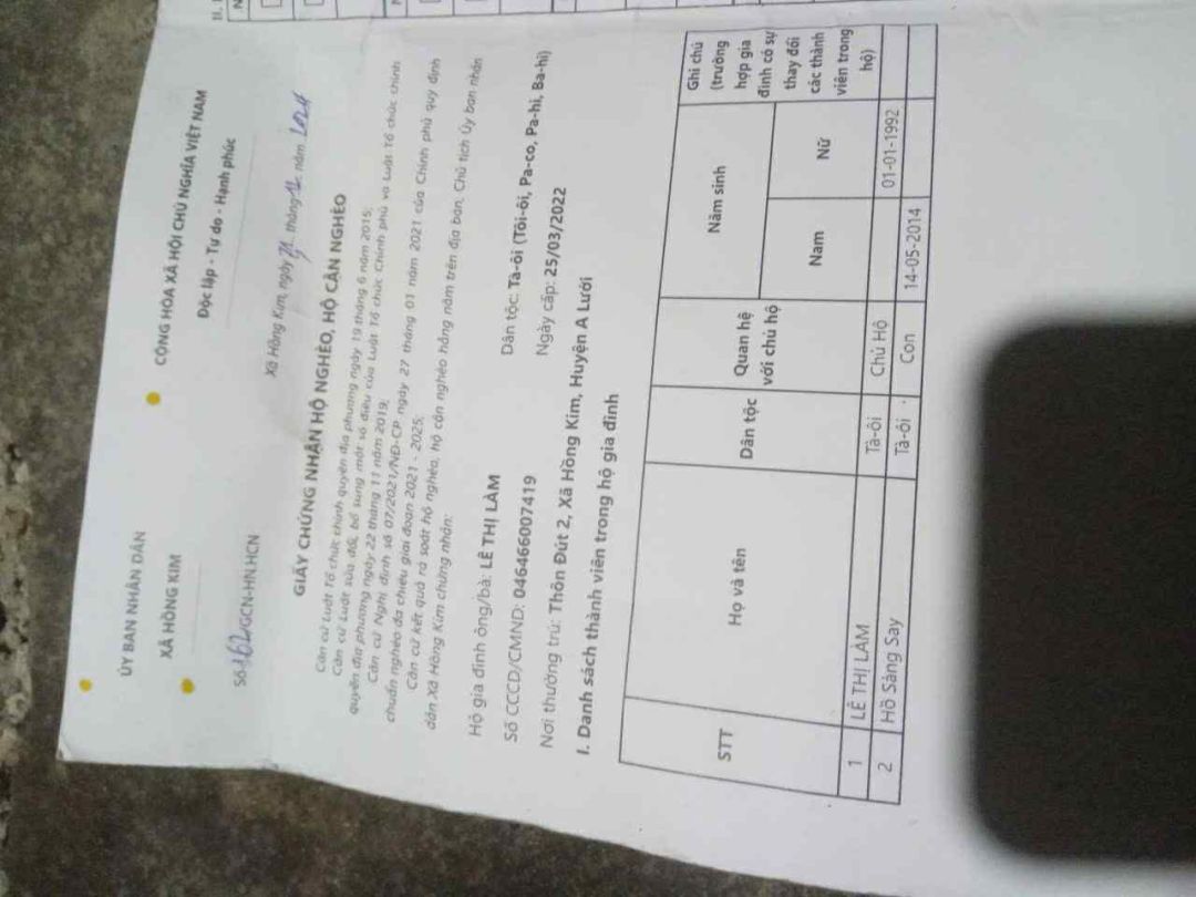 Tên mẹ sổ hộ nghèo thì Làm, cccd thì Lam