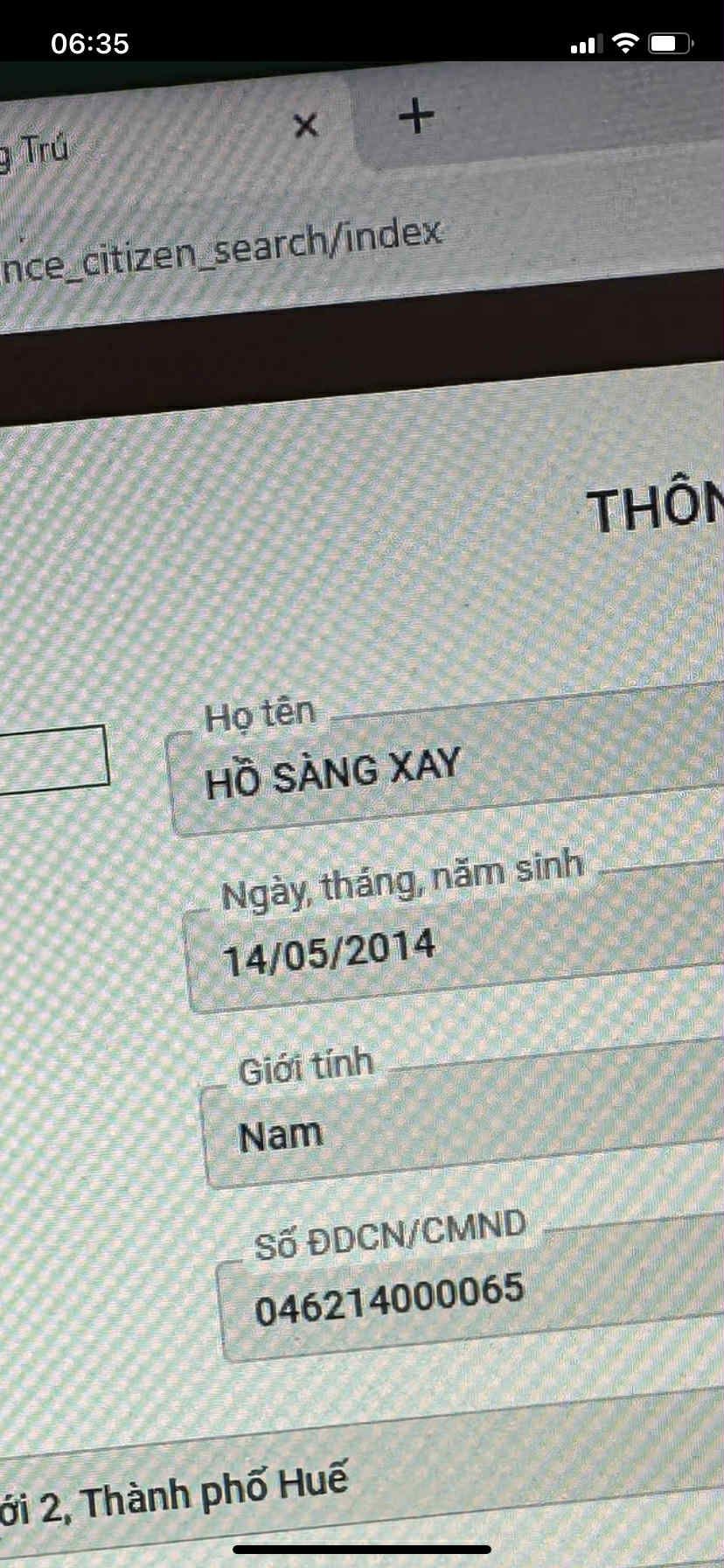 Trên hệ thống dữ liệu dân cư lại là Hồ Sàng Xay