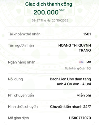 Cấp nhật đến 8h05 phút sáng nay số tiền ủng hổ đám tang cho ông A Cơ Vơn đã hơn 4 triệu đồng. Hiện tại vẫn còn thiếu hơn 6 triệu nữa. Mong cả nhà chung tay giúp đỡ cho ông A Cơ Vơn ạ!