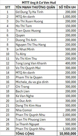LƯU Ý: Quý mạnh thường quân, nhà hảo tâm nếu em có ghi thiếu sót tên và số tiền xin báo lại để em kiểm tra nhé💗