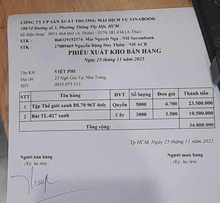 Vịt đã đặt 10.0000 quyển vở và 3.000 cây bút, tối nay hoặc sáng mai xe sẽ chuyển từ HCM về Nha Trang, hiện Nha Trang khan hiếm vở và giá cao gần gấp đôi. KHi nào hàng về tới Nha Trang, Vịt sẽ phối hợp với chị Thỏ thực hiện.