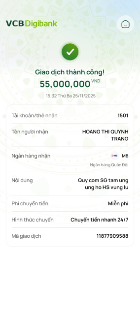 Để kịp thời mua sắm tập vở cho các em học sinh, BQT đã thống nhất tạm ứng từ Quỹ Cơm 2000đ SG. Kính nhờ cô @lathuvang  xuất 55,000,000đ từ quỹ cơm SG chuyển vào tài khoản của chị Trang, giúp nhóm sớm hoàn tất việc chuẩn bị hàng hóa.