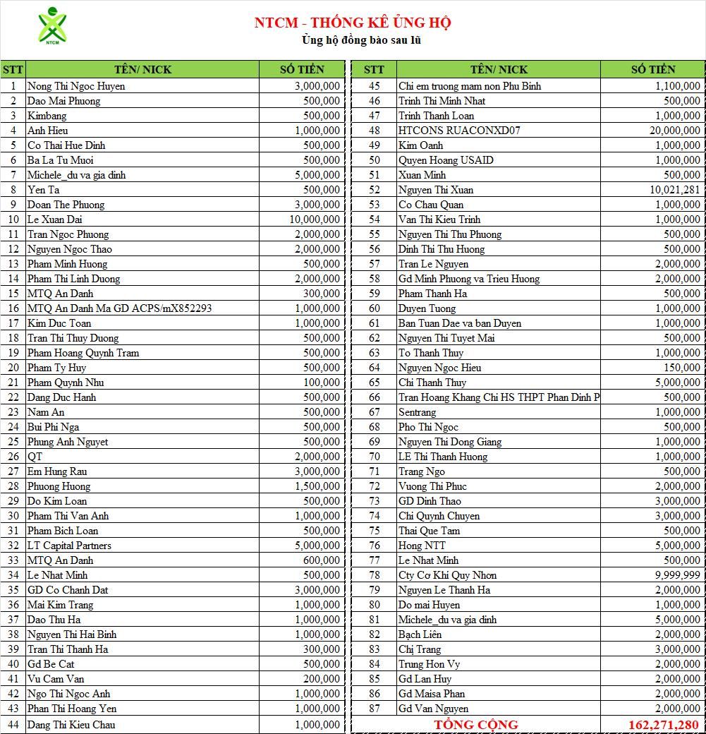 Trong những ngày qua, quý Mạnh Thường Quân đã chung tay hỗ trợ rất nhiều. Tuy nhiên, số lượng điểm bị ảnh hưởng và số hộ dân cần giúp đỡ vẫn còn rất lớn, nên nguồn kinh phí để triển khai các chương trình cũng cần được bổ sung thêm.