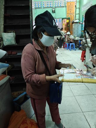 Cô kiếm sống bằng việc bán vé số, mỗi ngày cô chỉ bán được khoảng 30 tờ, nhiều thì 50-60 tờ.
