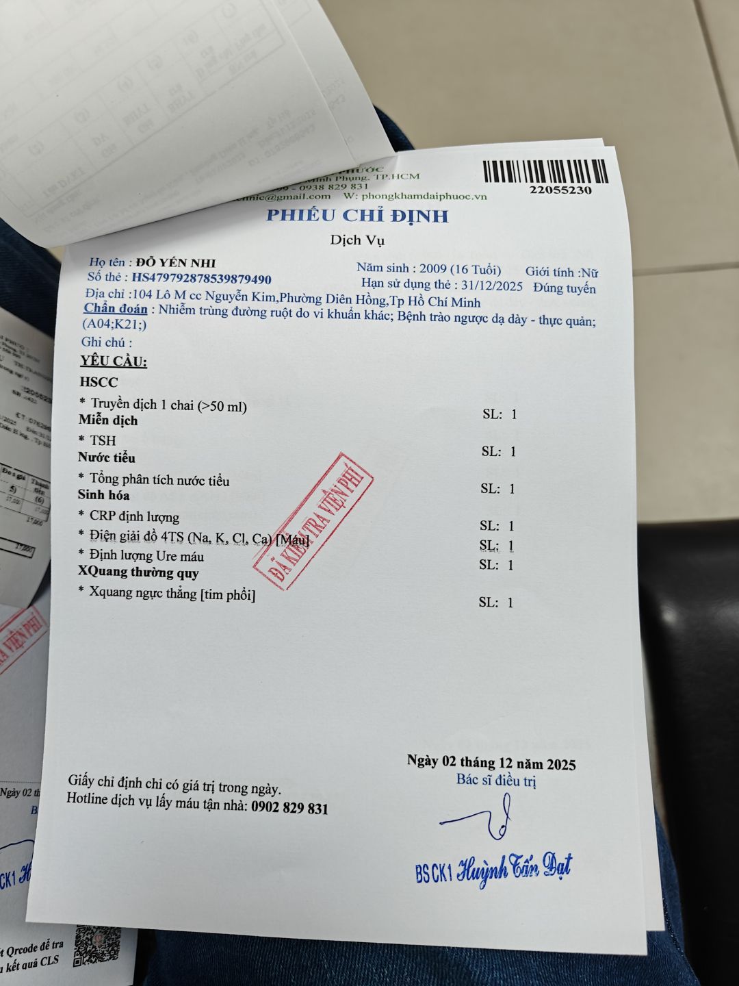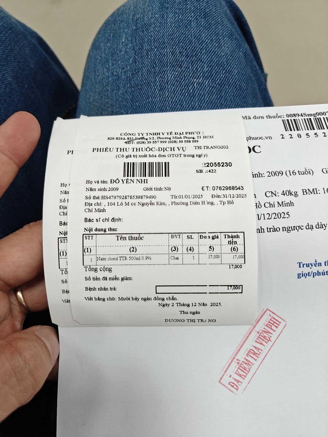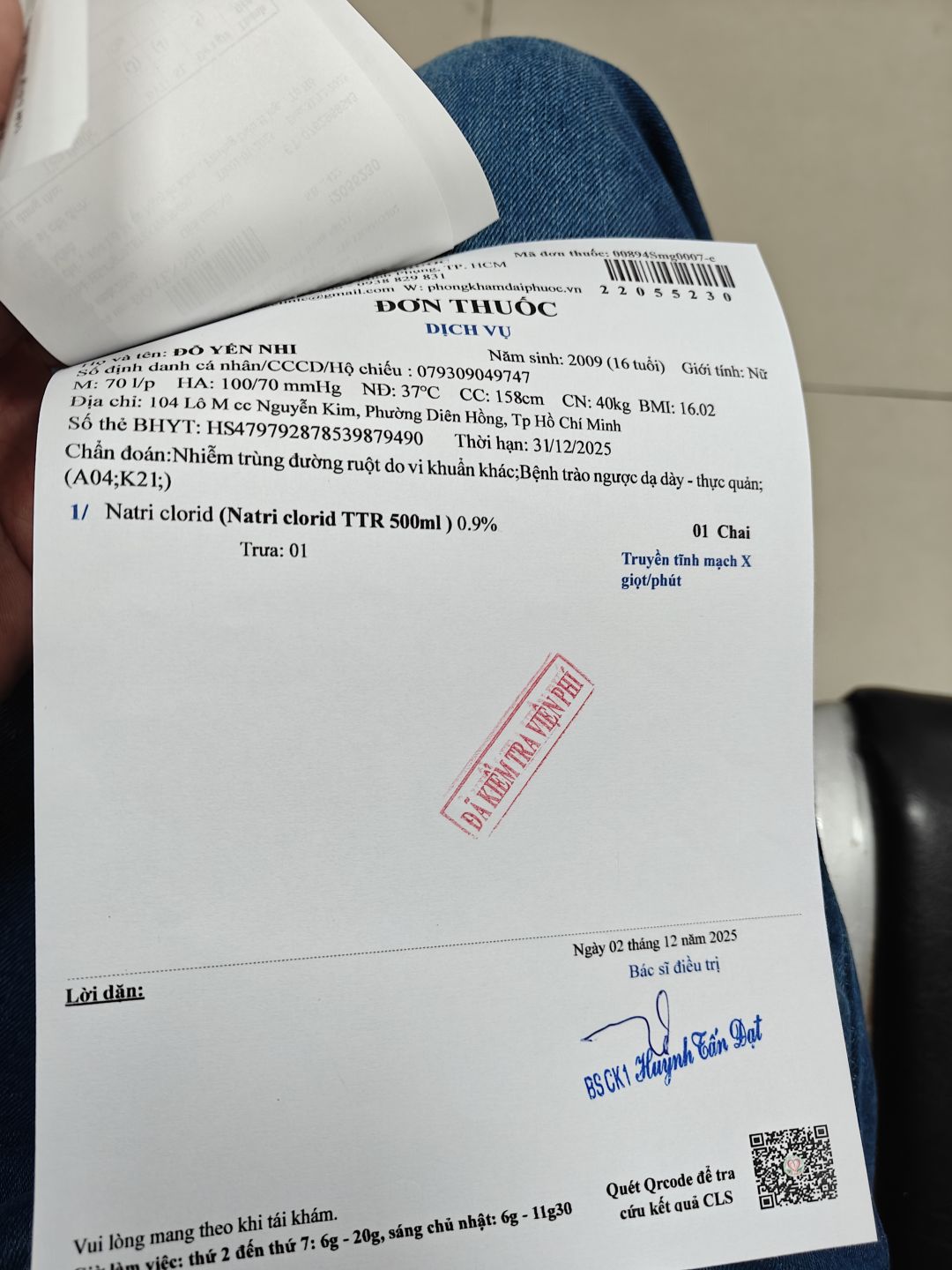 Letuantu đã cho cô mượn tiền để khẩn cấp đưa bé vào nhập viện. Trong chiều nay, bé đã làm các xét nghiệm từ phòng khám ( nơi mua BHYT) sau đó chuyển tuyến đến Bệnh viện đa khoa quận 11 để nằm điều trị tiếp tục. Số tiền hôm nay letuantu cho mượn đóng viện phí là hơn 2 triệu đồng.