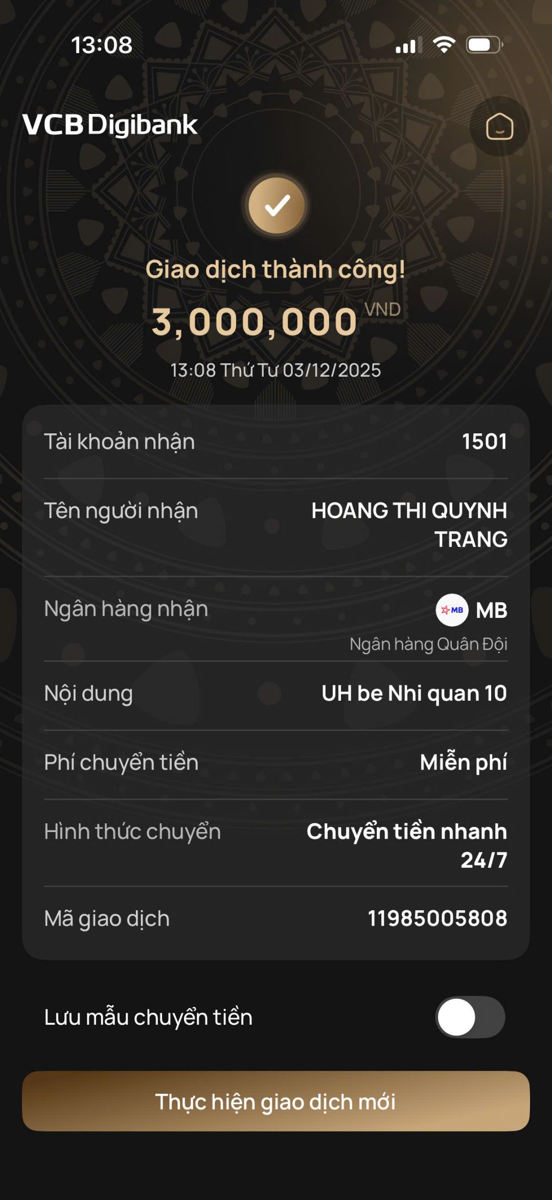 Con gái cô tên Đỗ Yến Nhi, sinh năm 2009, hiện đang học lớp 8 trường Nguyễn Tri Phương, hoàn cảnh gia đình khó khăn nên em được nhà trường miễn học phí.