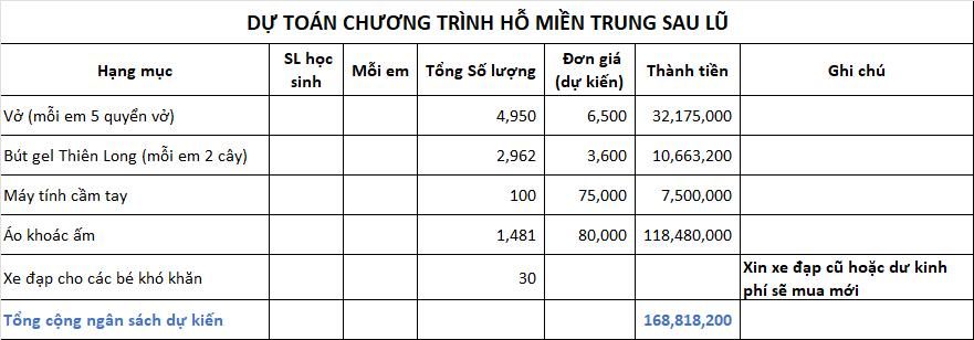 Để hổ trợ công tác dạy và học sớm đi vào hoạt động lại, trường có nguyện vọng được tài trợ như sau:
