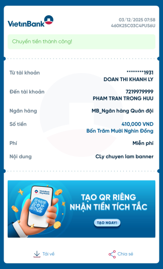 Rất mong sự quan tâm ủng hộ của cả nhà. " Sức mạnh lớn nhất trên cỏi đời này là sức sức mạnh của lòng nhân ái" Trân trọng!