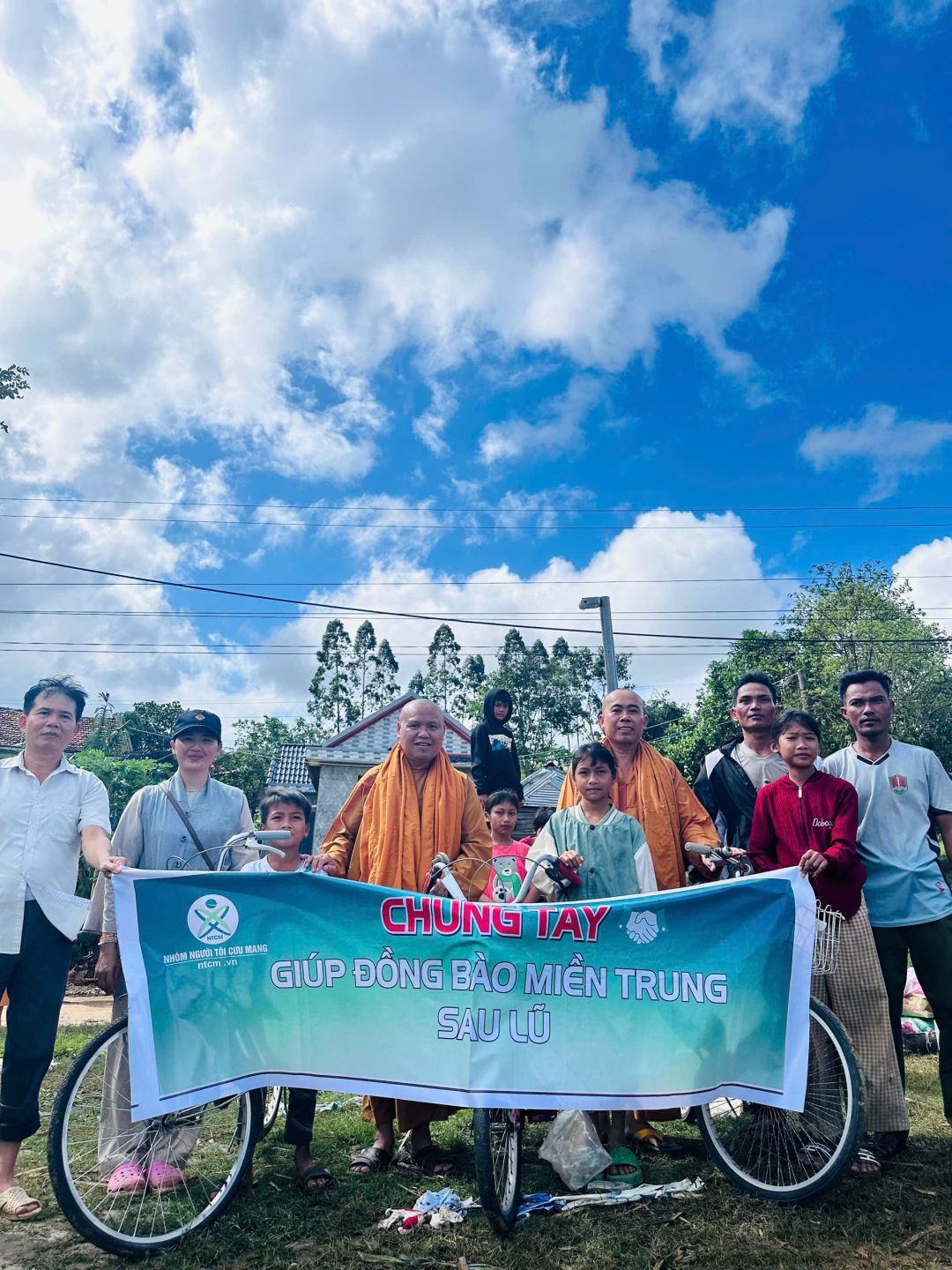 Tuần qua nhóm NTCM miễn trung tiếp tục chường trình hỗ trợ bà con vùng lũ miền trung khắc phuc khó khăn. Nhóm đã trao tặng 13 chiếc xe đạp cho các em học sinh cụ thể như sau: