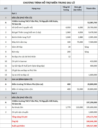 Gửi cả nhà chi phí và ủng hộ cho chương trình ở Phú Yên - Gia Lai nhé
