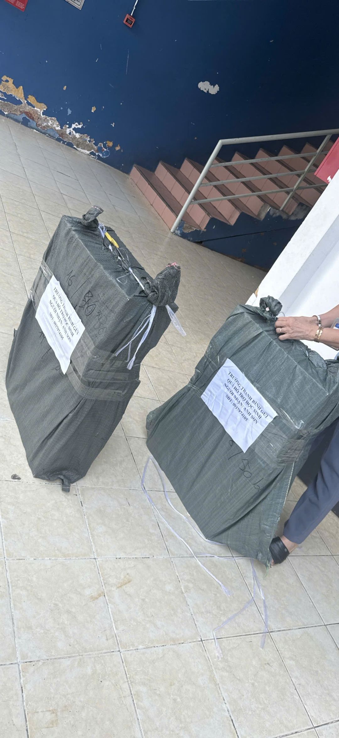 Trường Tiểu học, Trung học cơ sở, Trung học phổ thông THANH BÌNH, TP.HCM (bên anh Opla) đã gửi 1000 cuốn tập ra Quy Nhơn.