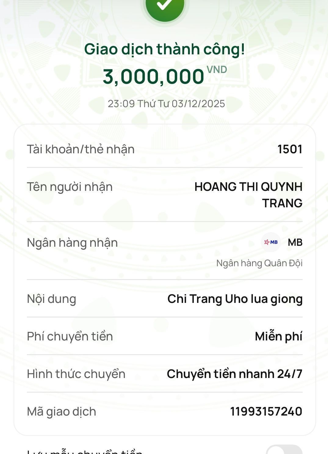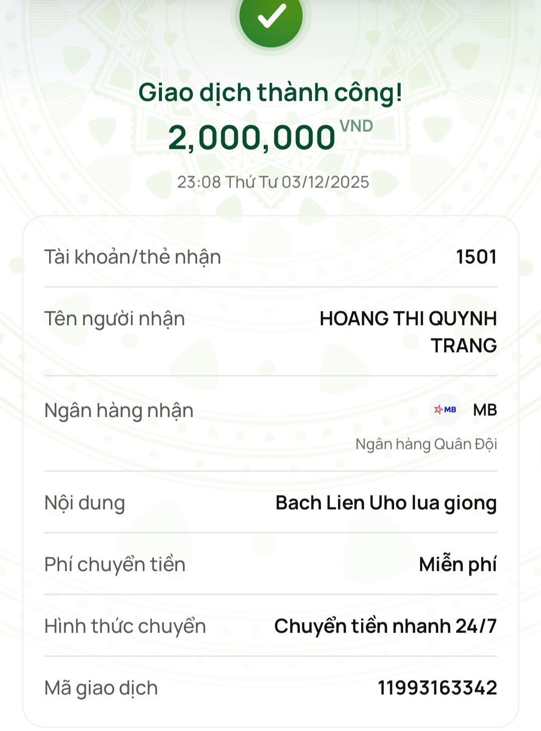 Tieuhuongduong đã nhận từ quỹ 183,820,000đ và đã thanh toán đủ tiền mua lúa
