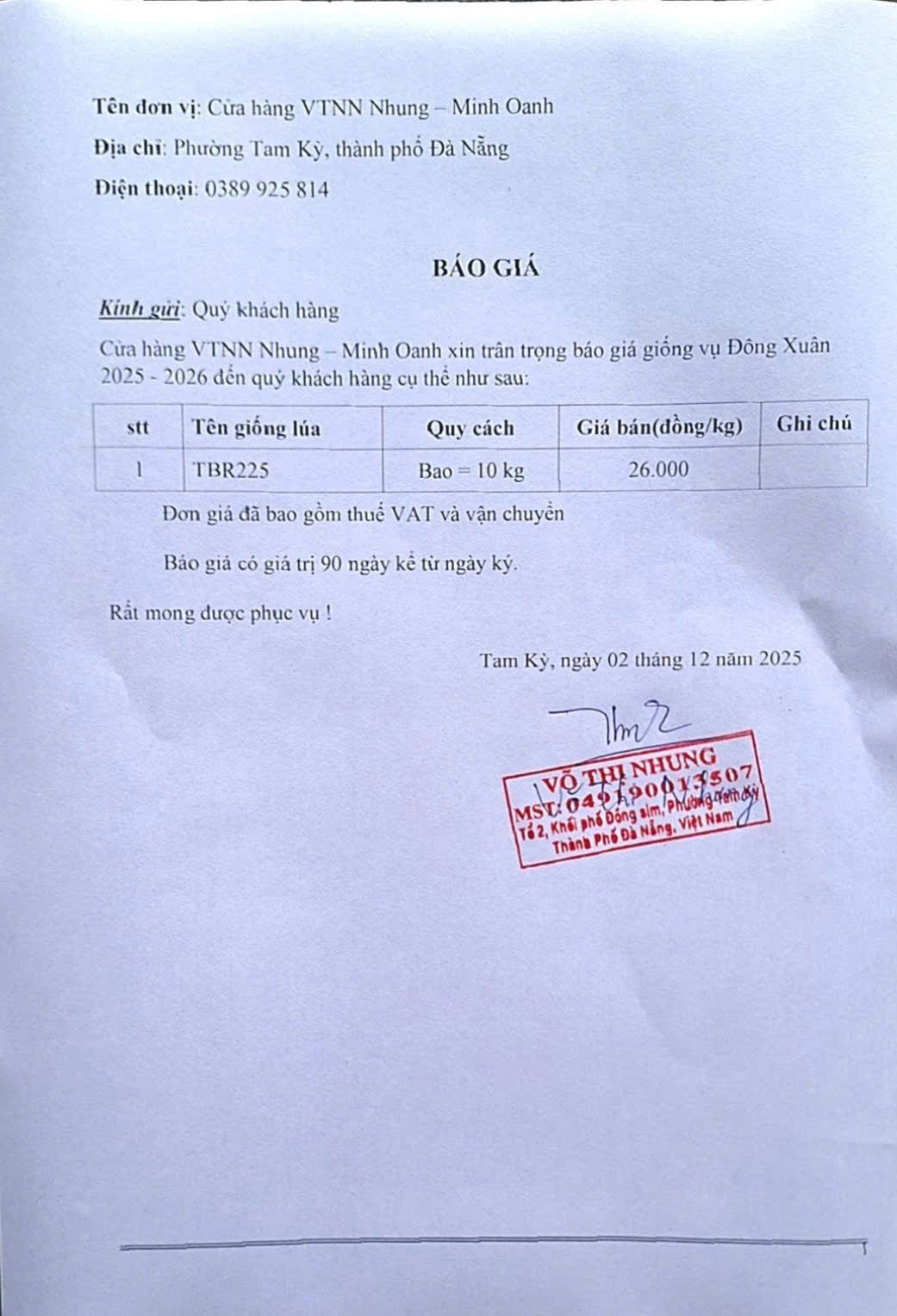 6.      Thời gian dự kiến trao lúa cho bà con: ngày 14/12/2025