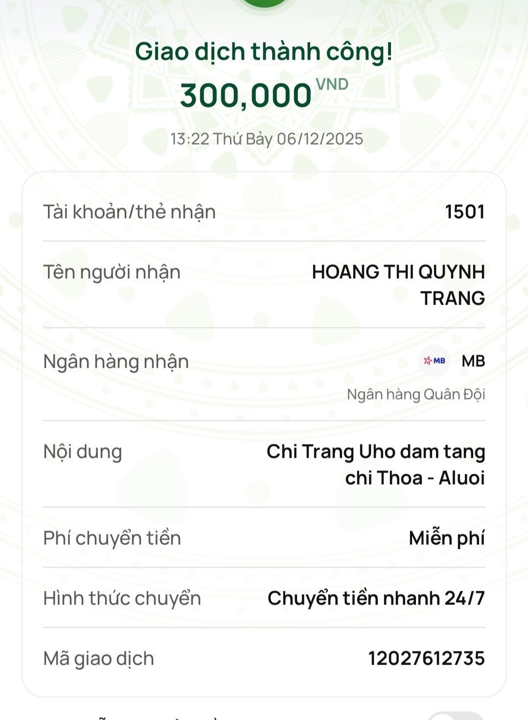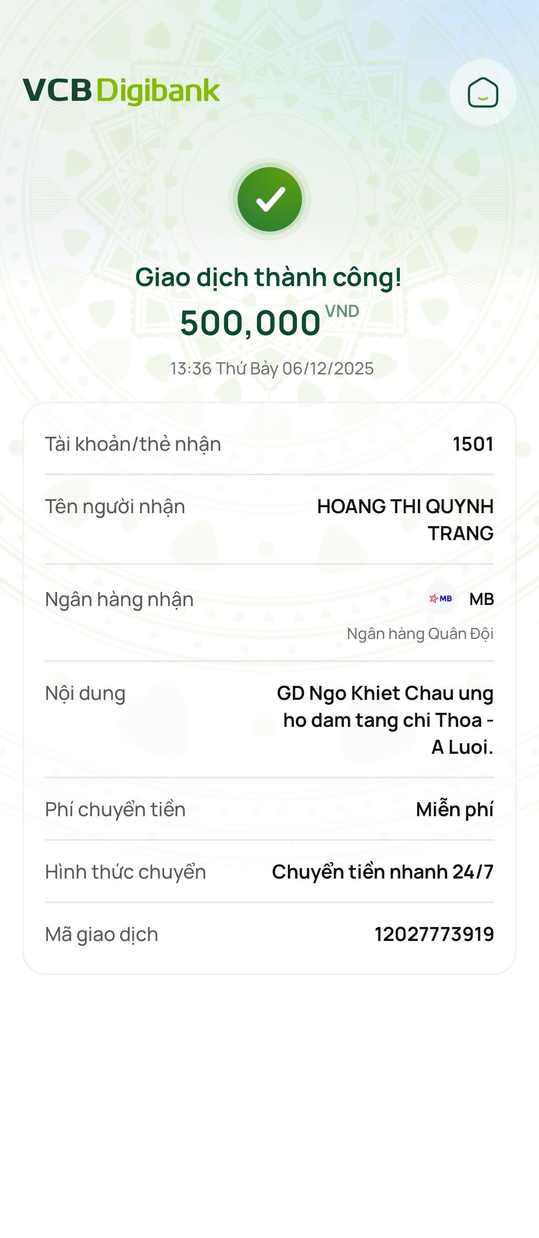 Em Wendy Duong xin nhờ quý MTQ hỗ trợ mai táng gấp cho chị Vũ Thị Thoa sn 1970 , trú tại xã A Lưới 1, thành phố Huế.