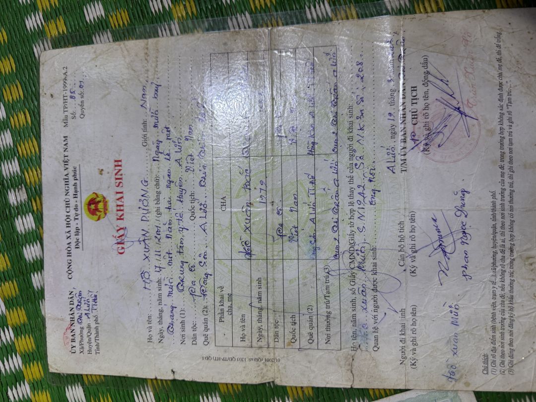 - Hồ Xuân Duân ,5 tuổi, chưa làm hồ sơ khai sinh