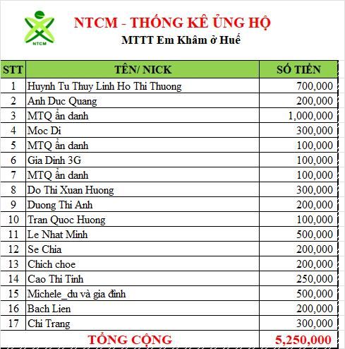 Loannguyen cập nhật ủng hộ MTTT Em Khăm đến hiện tại nhé.