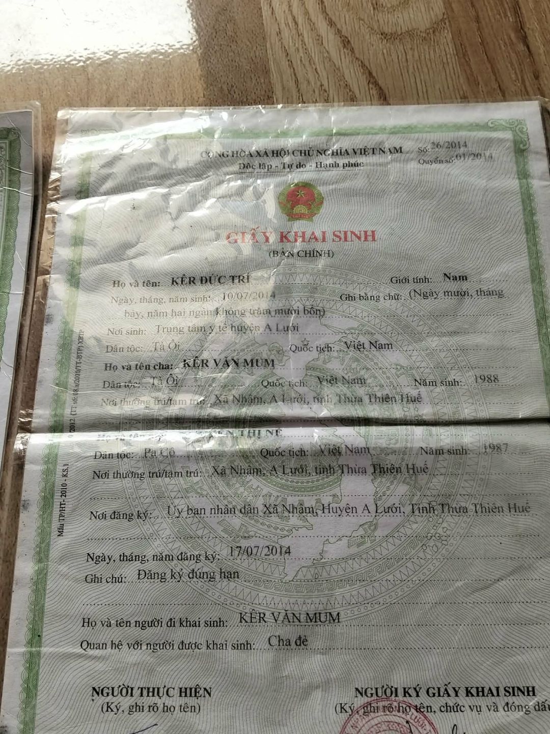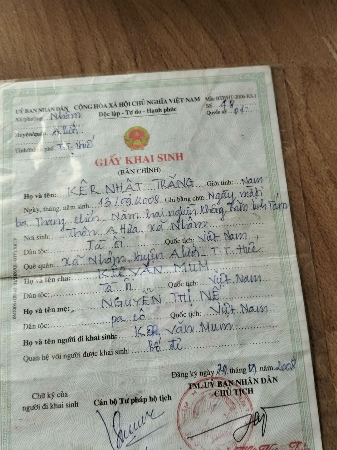 - Đứa thứ hai: Kêr Đức Trí, sinh ngày 10/07/2014 ( học lớp 6 trường Quang Trung không có xe đạp )