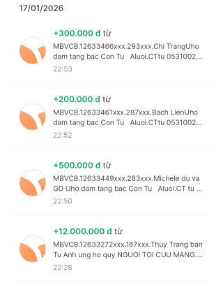 @trangvitgioi : Em chuyển 6,000,000₫ tới @Pi Riu Thế để sớm mai bạn ấy thay mặt NTCM gửi đến Gia đình bác Con Tư dùm nhé.