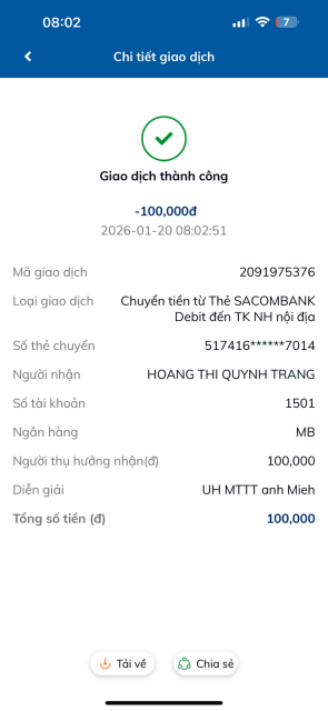 Em Nguyễn Lê Kim Oanh ủng hộ 100.000 đ