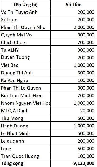Thông tin tiếp nhận ủng hộ: