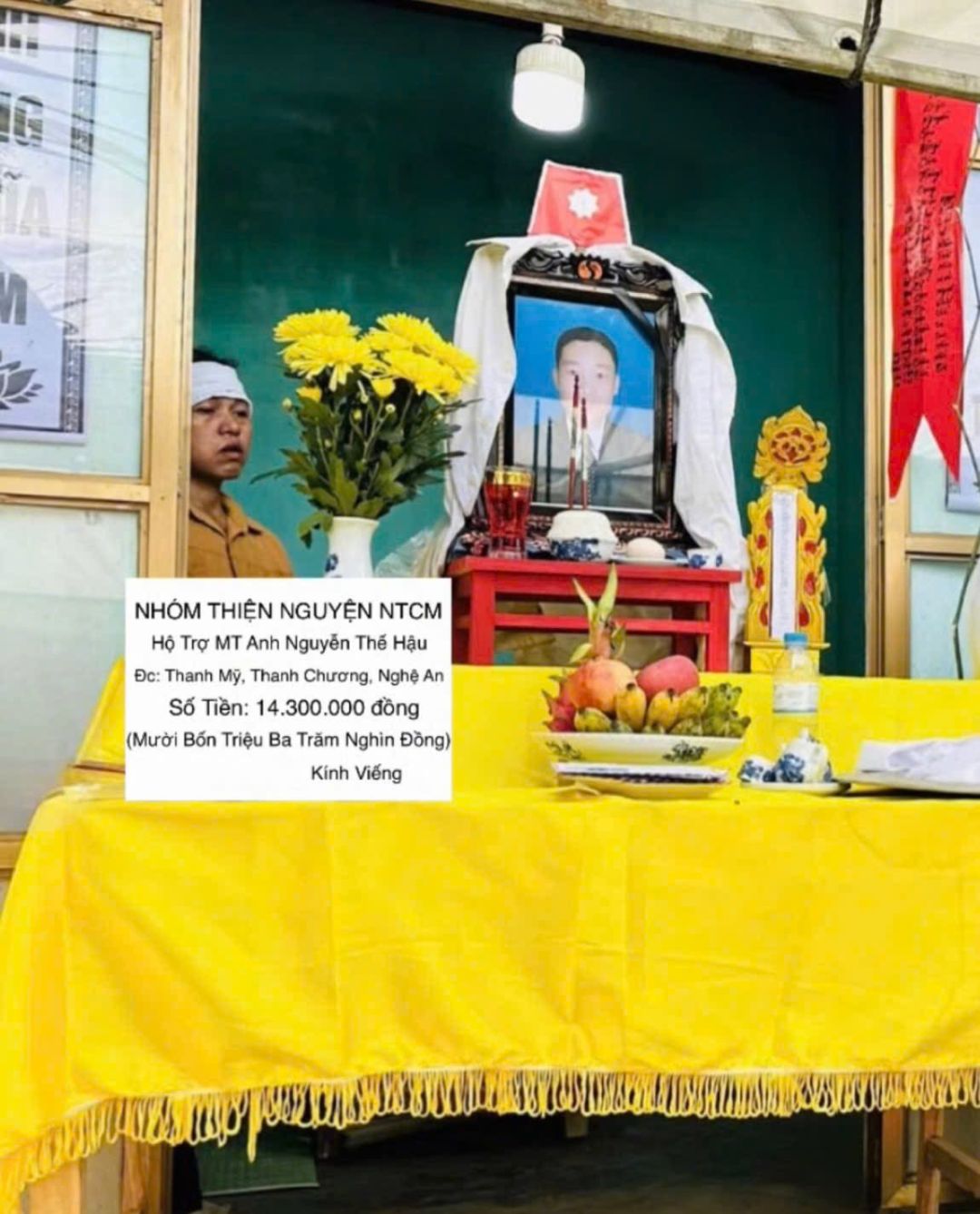 Sáng nay em đã đến thắp hương và trao số tiền 14.300.000 đồng cho gia đình anh Hậu