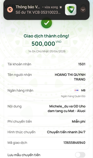 Michele_du và Gia đình ủng hộ đám tang của Cụ Mật 500,000₫.