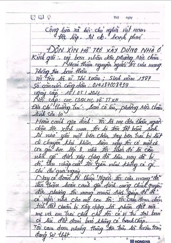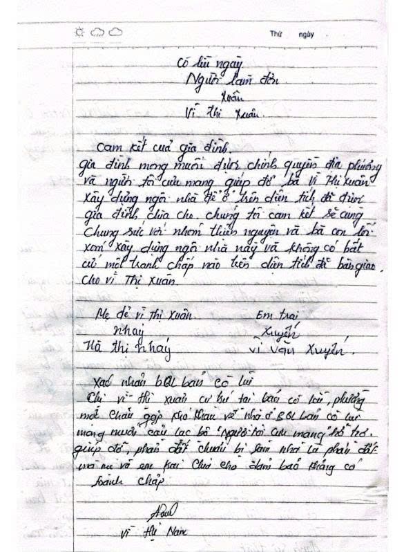 Bà Vi Thi Xuân - Sinh năm 1987 - Người dân tộc Xi Mun bị tàn tật từ nhỏ , hiện tại có bệnh động kinh và tay chân yếu khó khăn trong di chuyển. Chị là mẹ đơn thân có một con gái năm nay học lớp 8. Ngôi nhà được Anh em xây dựng trước đó hiện tại đã sụp đổ, Chị đang ở nhờ nhà mẹ cùng với gia đình của anh em trai . Chị hầu như không có thu nhập gì , chỉ đủ miếng ăn qua ngày. Con gái đi học cũng phải được hỗ trợ của Thầy cô và bà con lối xóm.