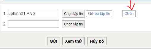 2. các bạn có thể upload hình lên bài viết bằng điện thoại hoặc mánh tính ( Chọn tập tin -> Chọn hình bạn muốn đăng -> Chèn ) Nếu bạn nào lỡ không nhấn nút chèn, hình vẫn được đính kèm vào bài viết nhưng rất nhỏ và khó nhìn!