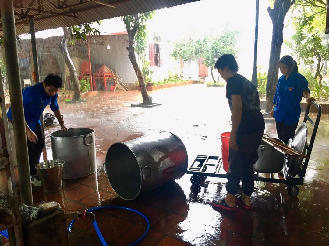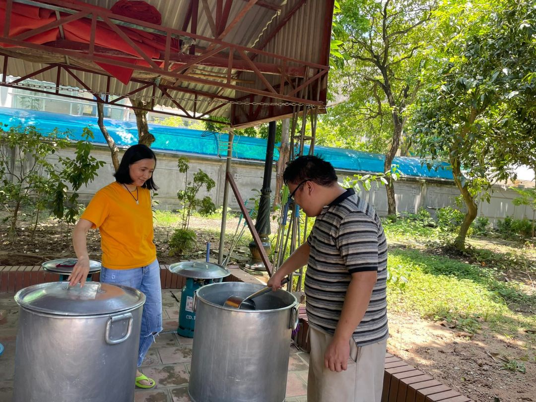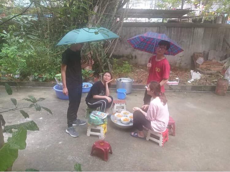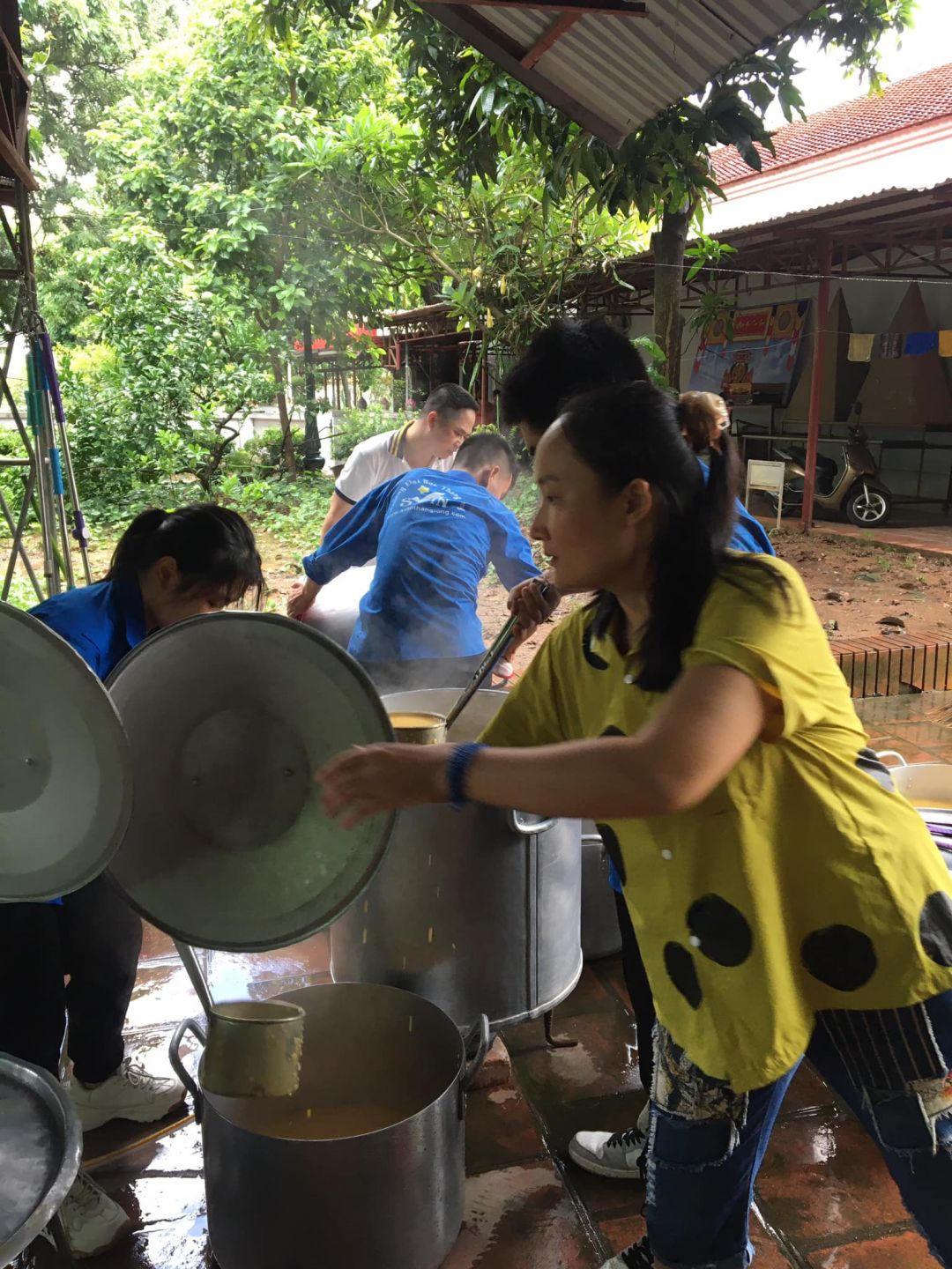 - Thứ 7 với cơn mưa rào đầu hạ  không ảnh hưởng đến buổi nấu và phát cháo.