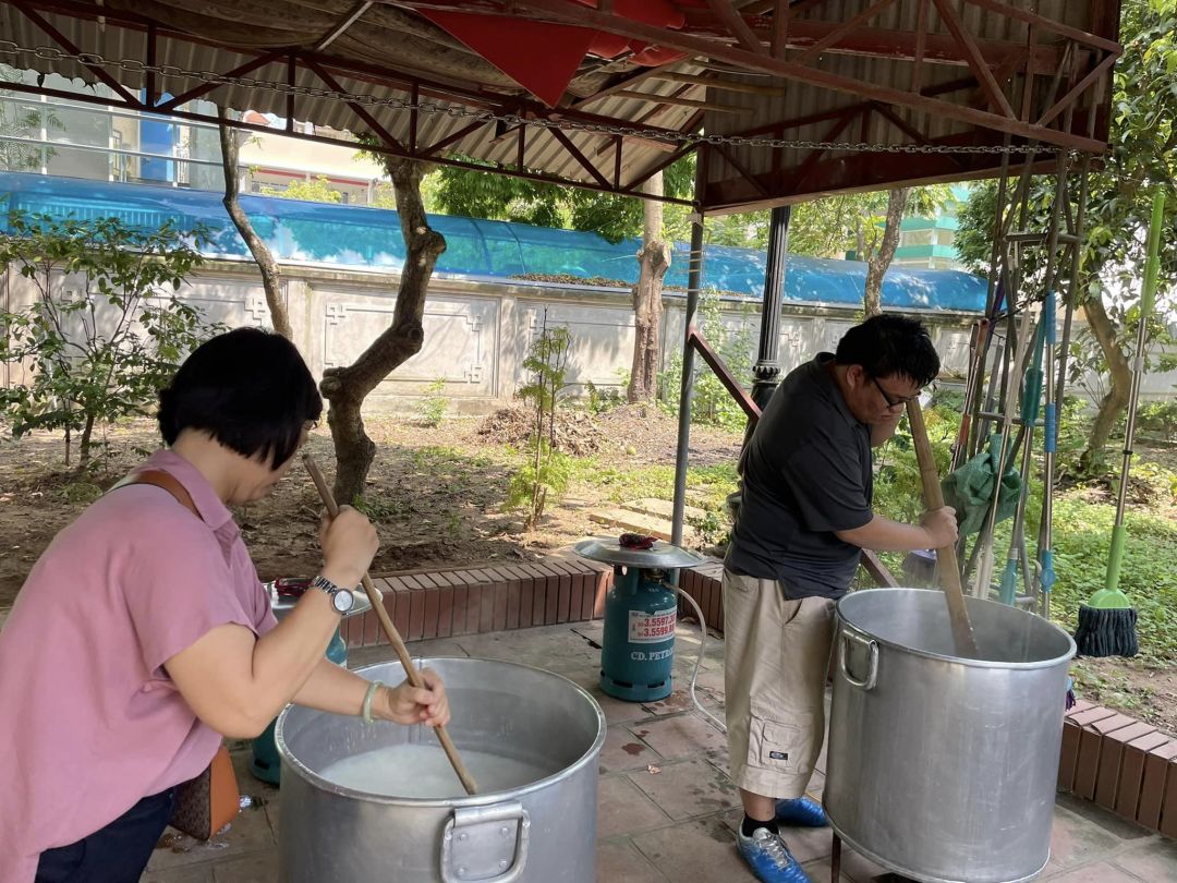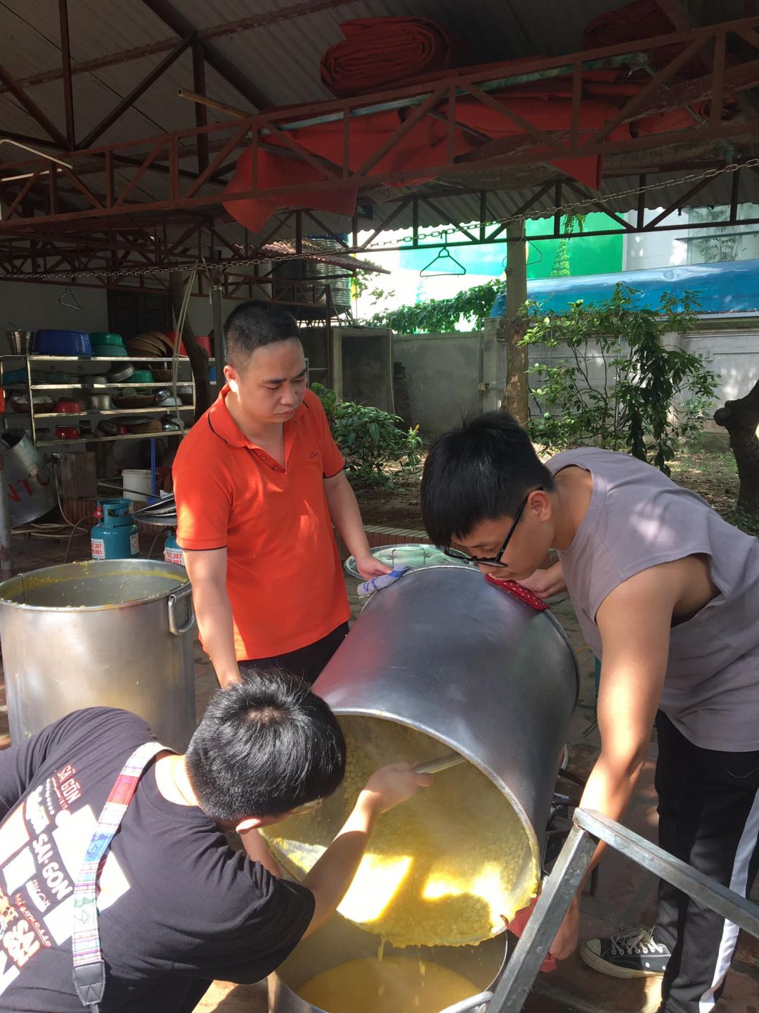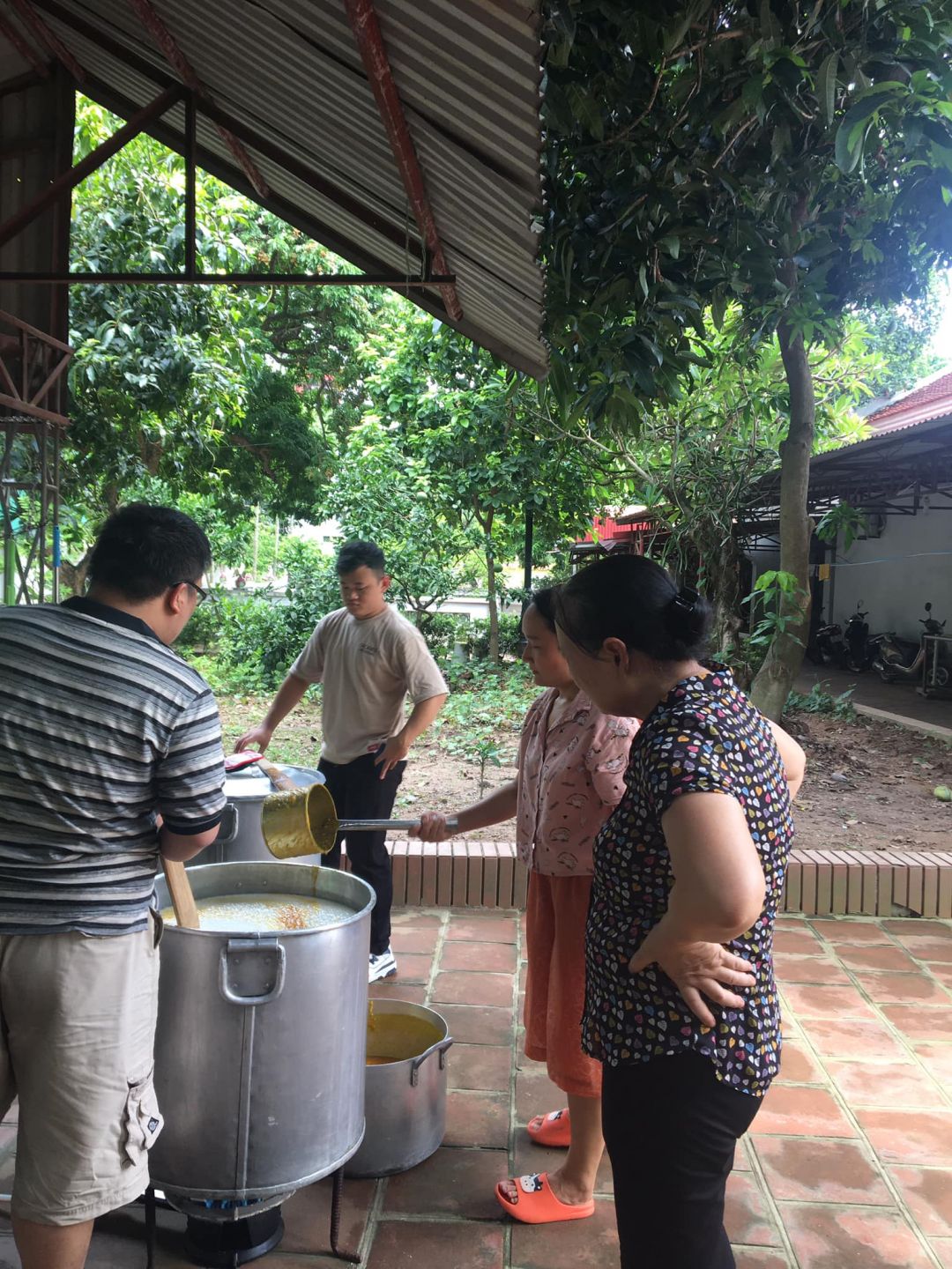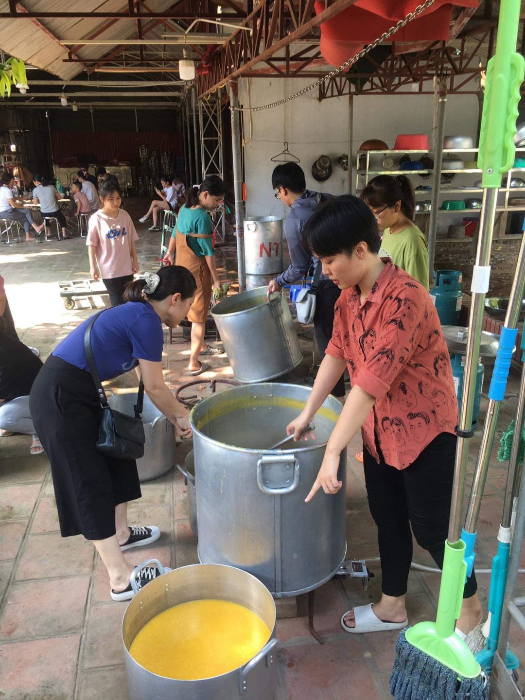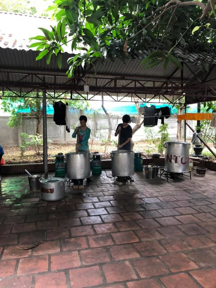 - Cháo chuyển về cùng soup tại chùa Phụng Lộc, địa điểm nấu rất rộng rãi và đông vui.