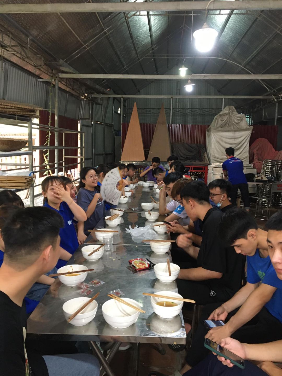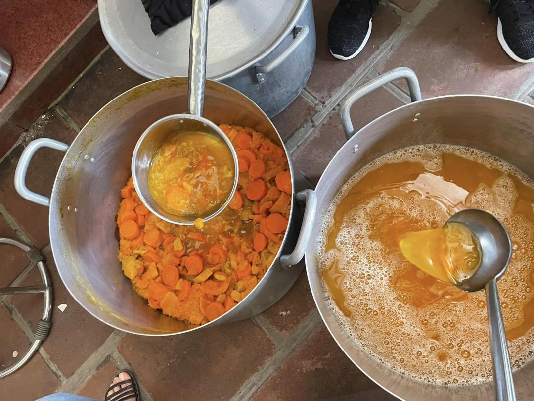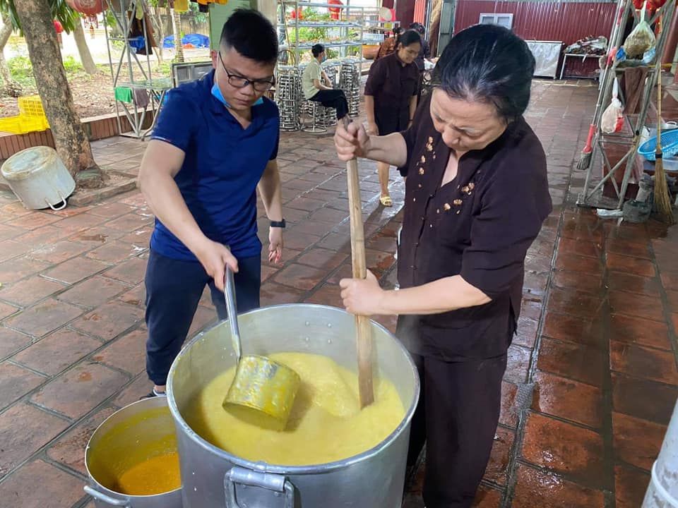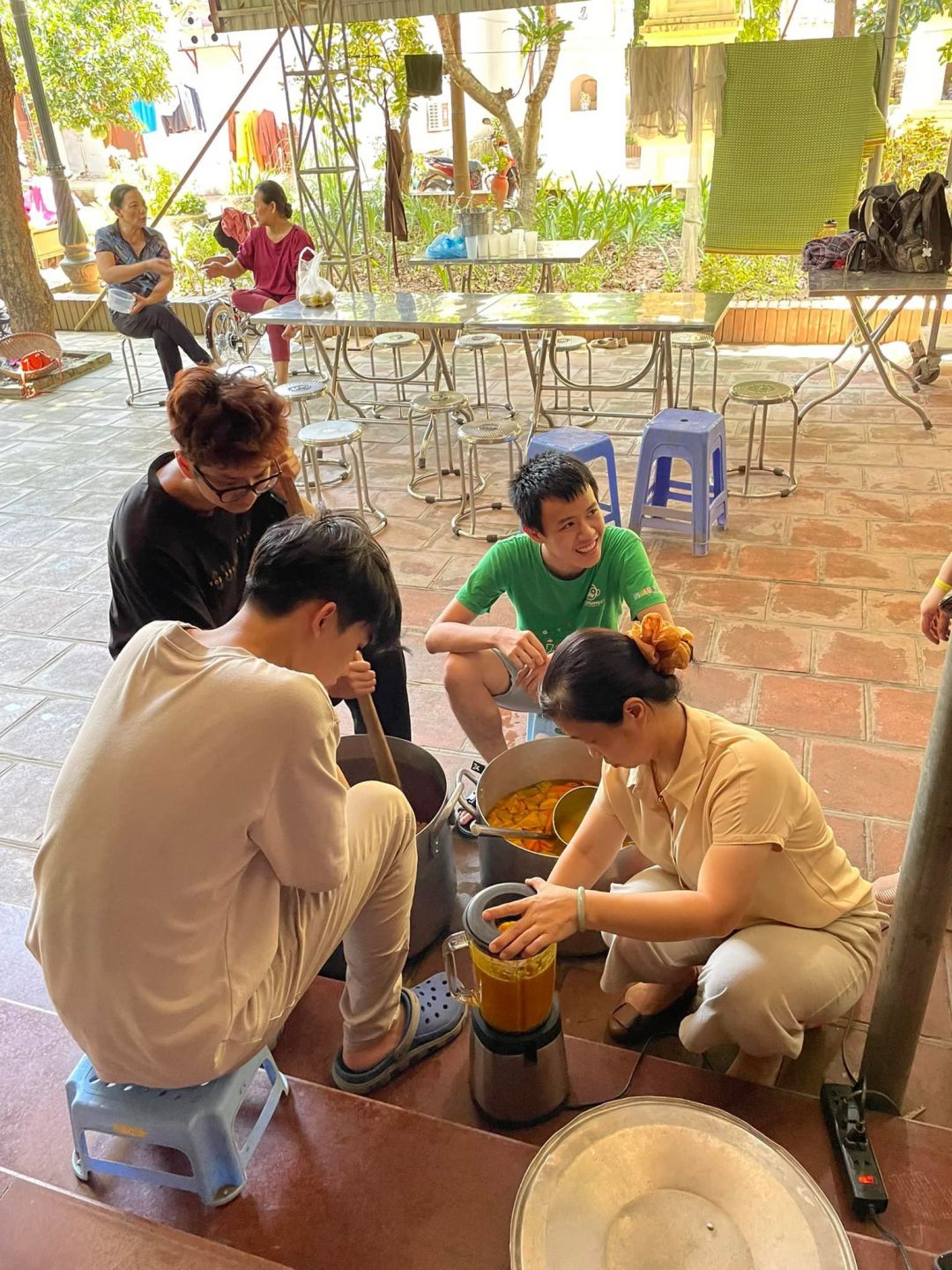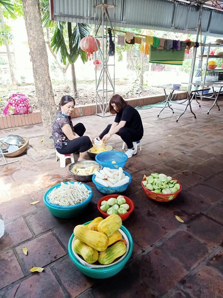 - Cháo chuyển về cùng soup tại chùa Phụng Lộc, địa điểm nấu rất rộng rãi và đông vui.