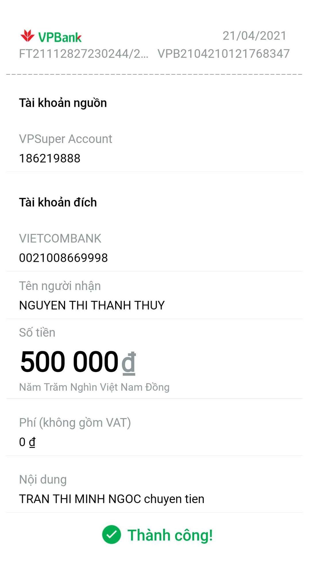 + Chị Ngọc ủng hộ: 500.000 đ