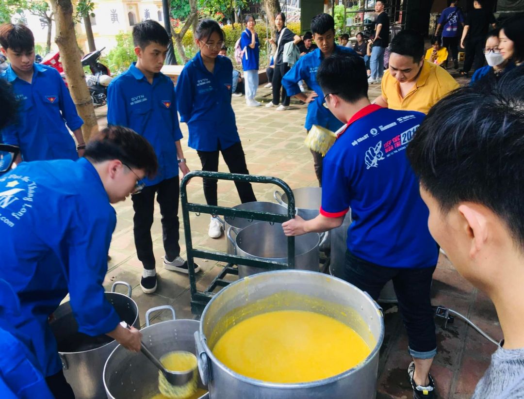 - Tuần này do các bạn sinh viên tình nguyện nấu cháo. 5 nồi cháo được phát hết trong một nốt nhạc.