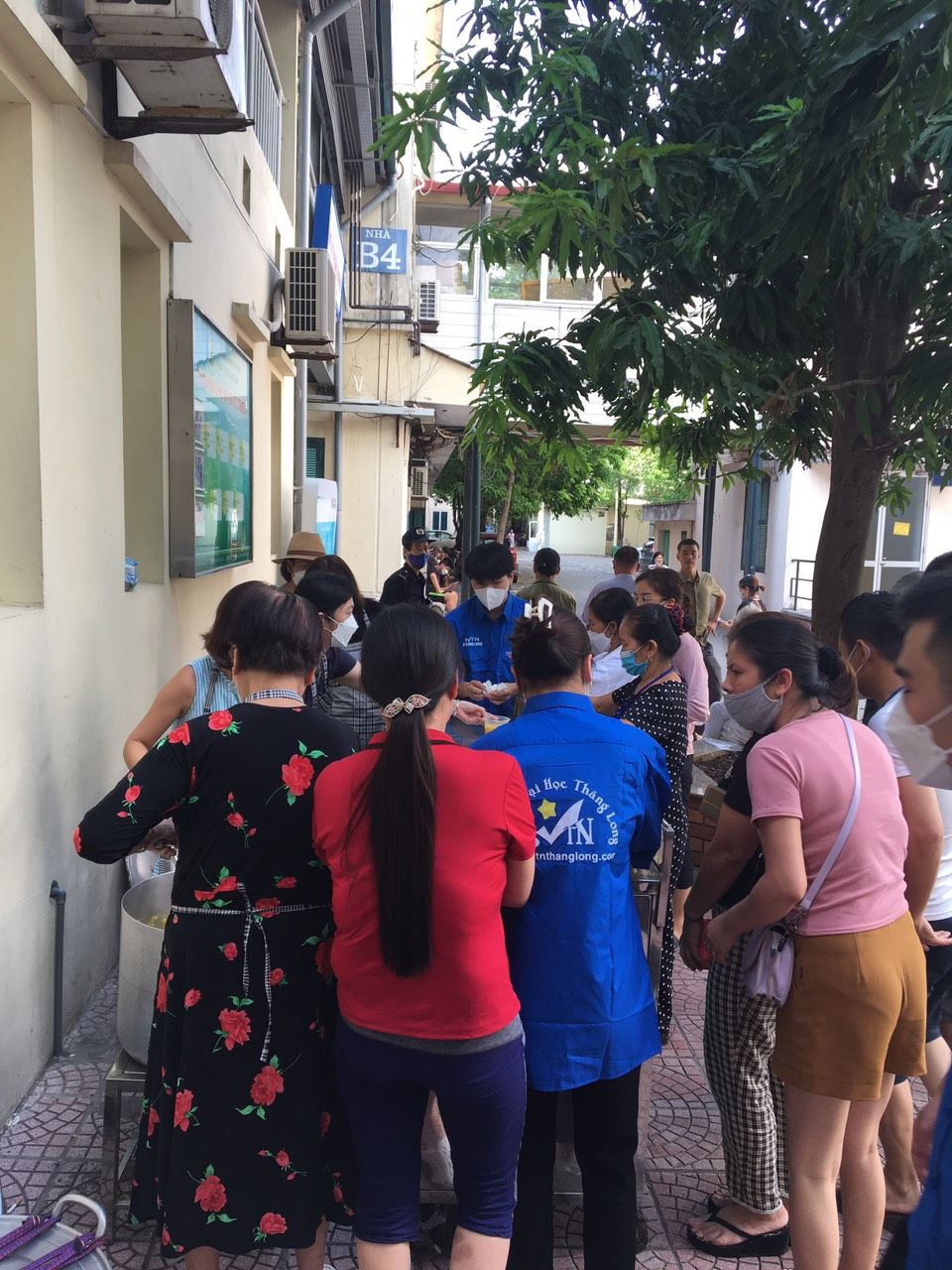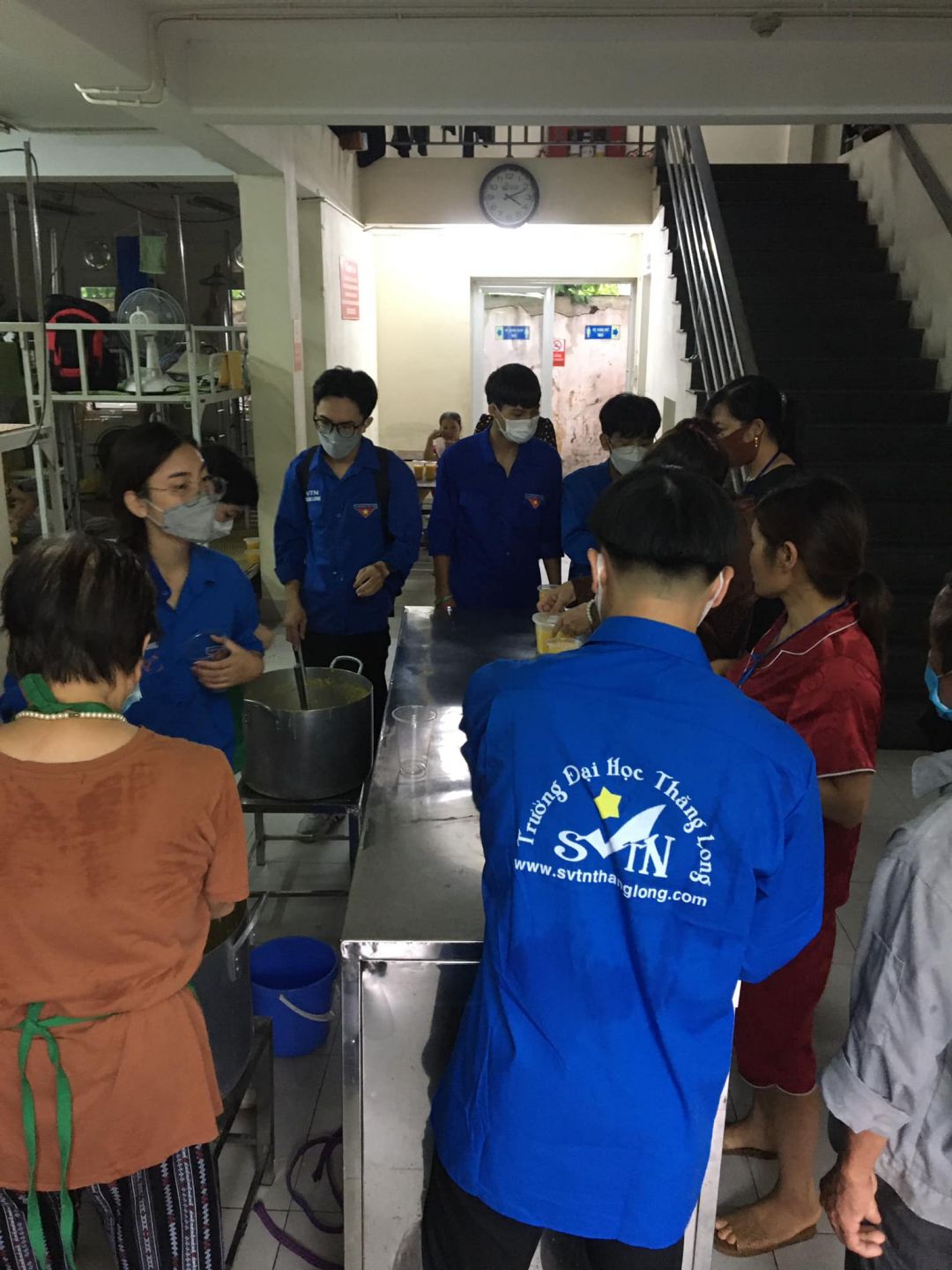 Bắt đầu phát cháo được một lúc thì hết veo 4 nồi, còn 1 nồi do hết cốc nên chậm xíu. Các bạn sinh viên tình nguyện trường Đại học Thăng Long hỗ trợ nhiệt tình nên cốc được mua bổ sung.