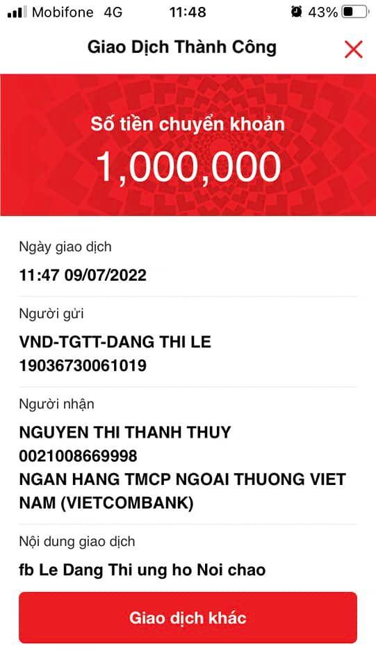 + Chị Dang Thi Le ủng hộ 1tr