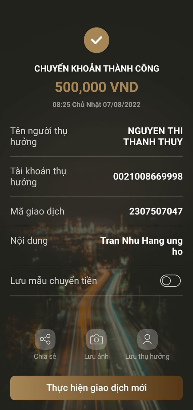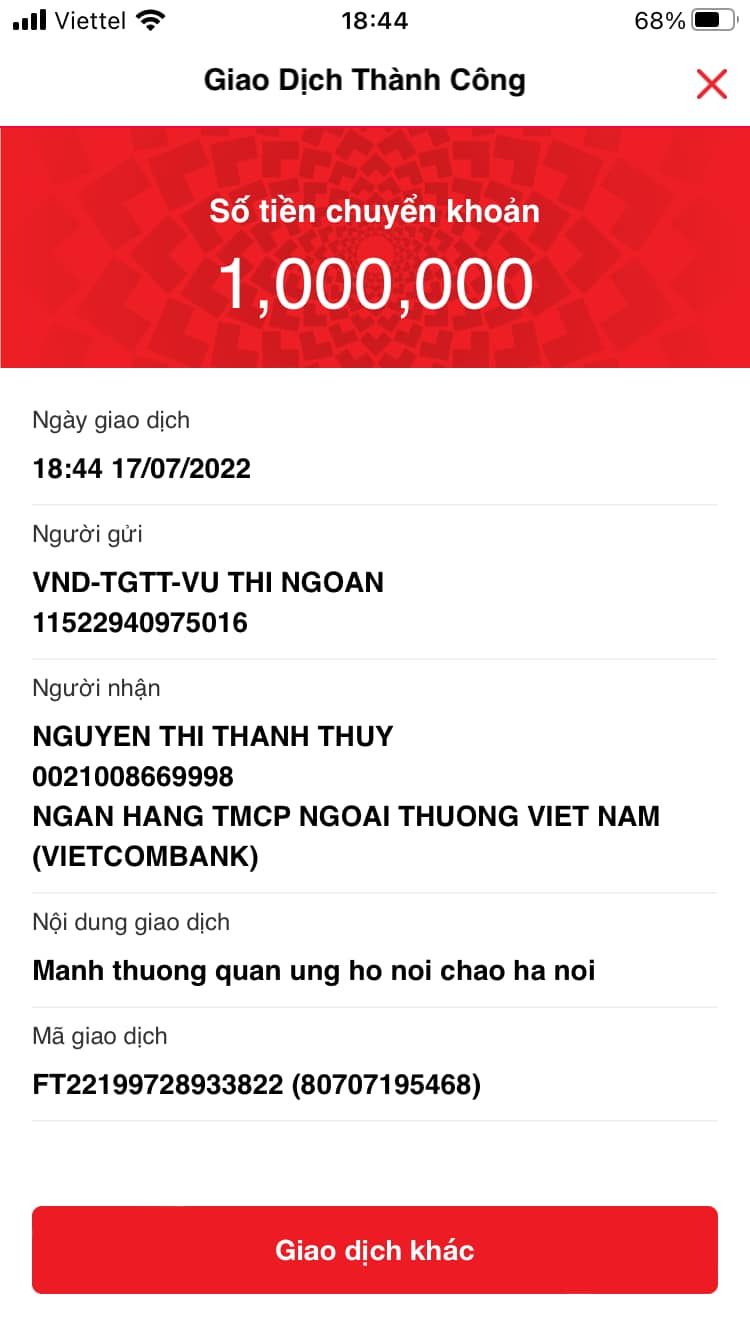 + Hai mạnh thường quân dấu tên ủng hộ: 300.000đ