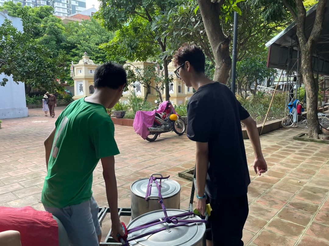 Tuần này học sinh trường Vinschool tham gia nấu và phát cháo cùng team.