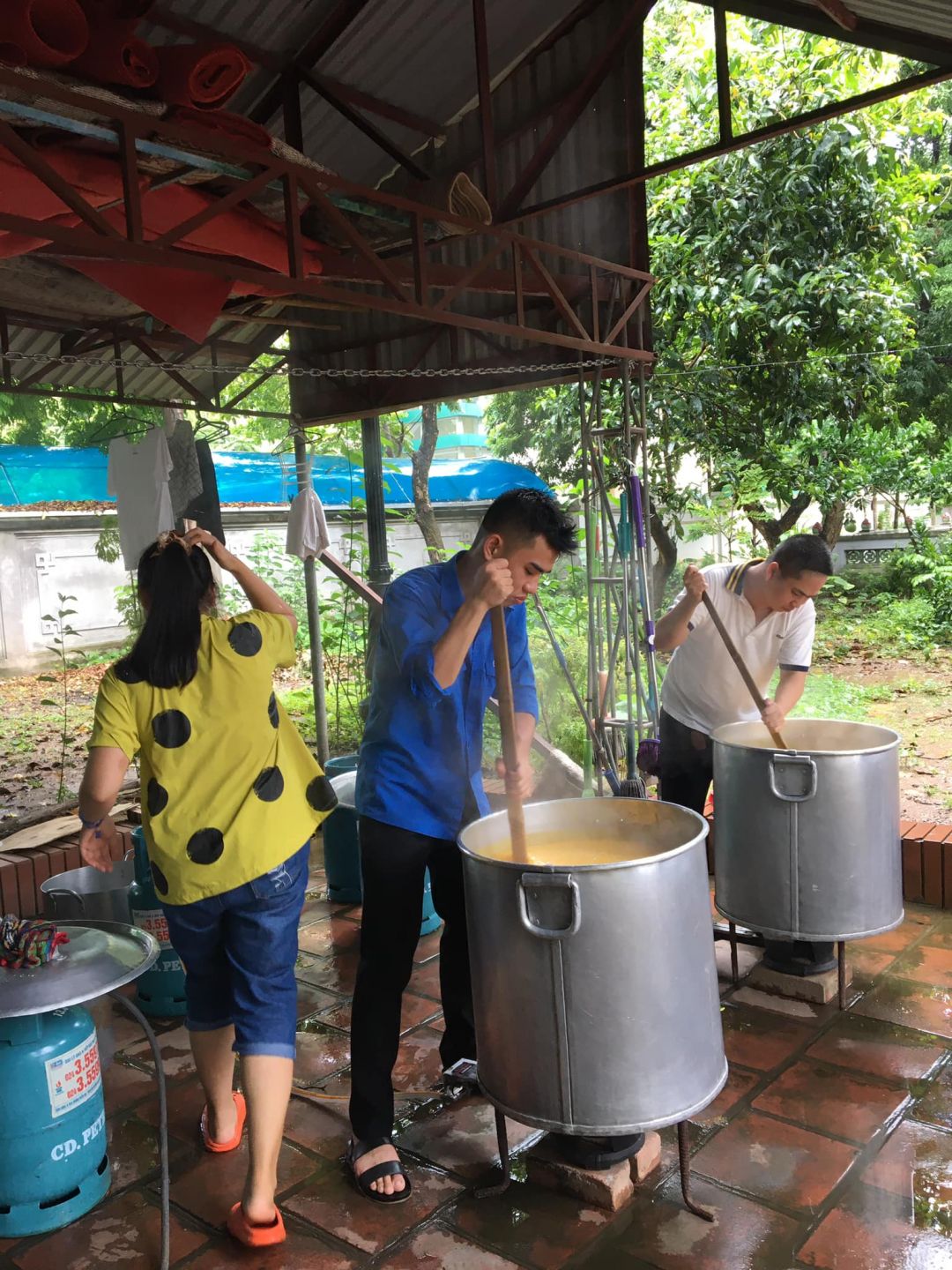 - Thứ 7 mưa nhưng cũng không ảnh hưởng đến nấu và phát cháo.