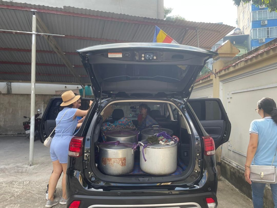 Tuần này nồi cháo được ưu ái, người vận chuyển kiêm luôn người nấu cháo và chở cháo đến bệnh viện.