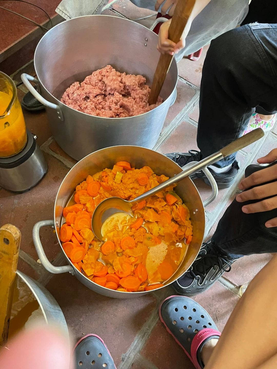 Cháo súp về chung nhà nên nồi cháo có thêm các mama hỗ trợ nhiệt tình.