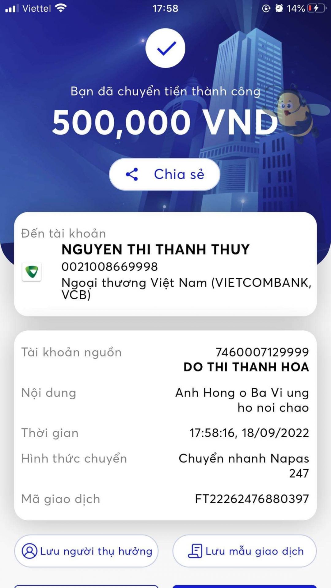 + Anh Hồng Ba Vì ủng hộ: 500.000 đ