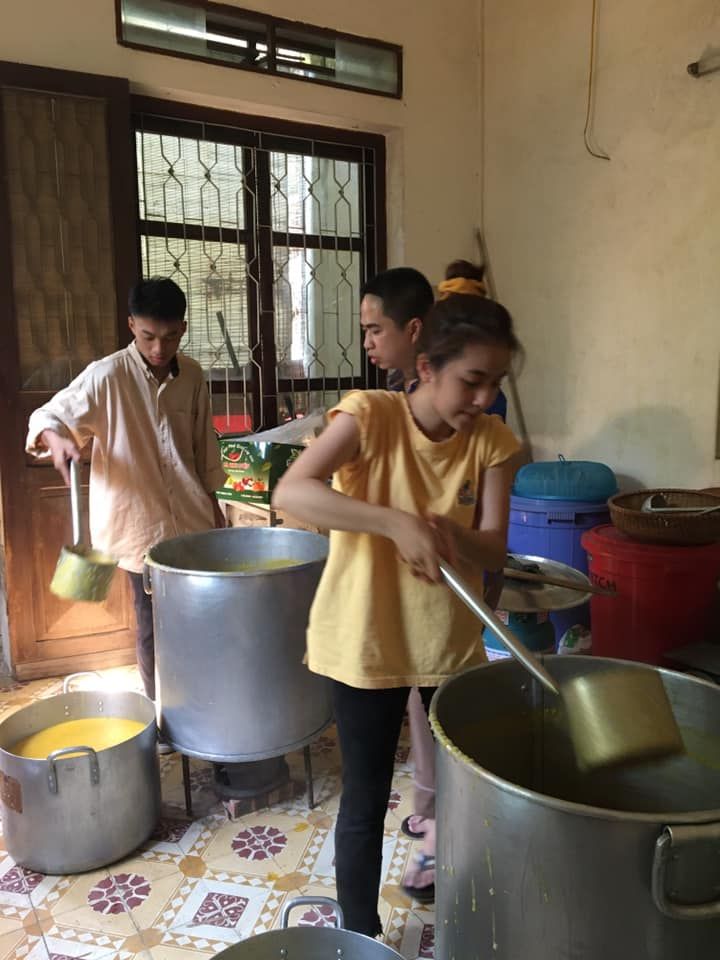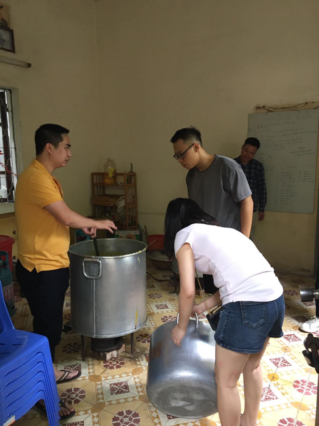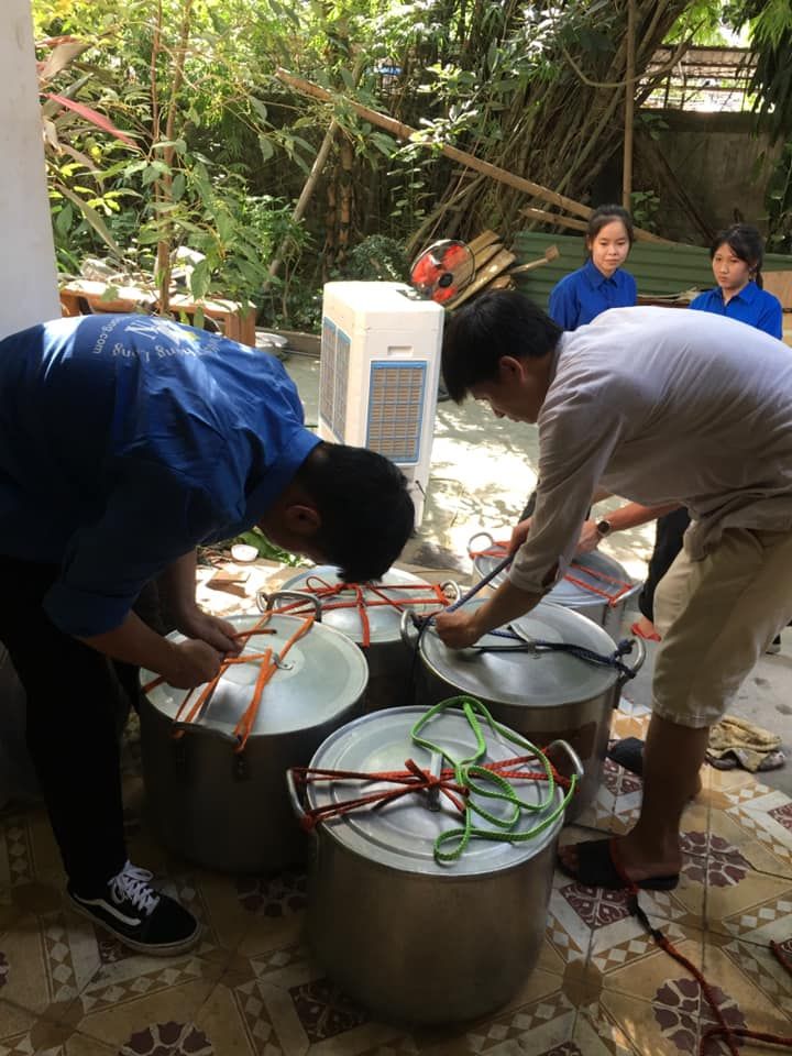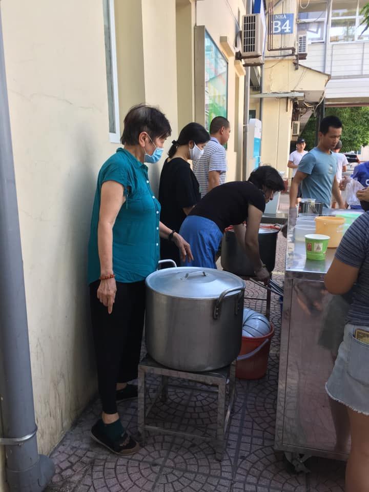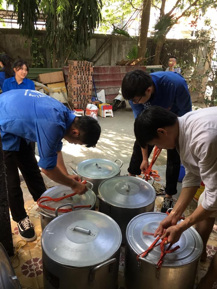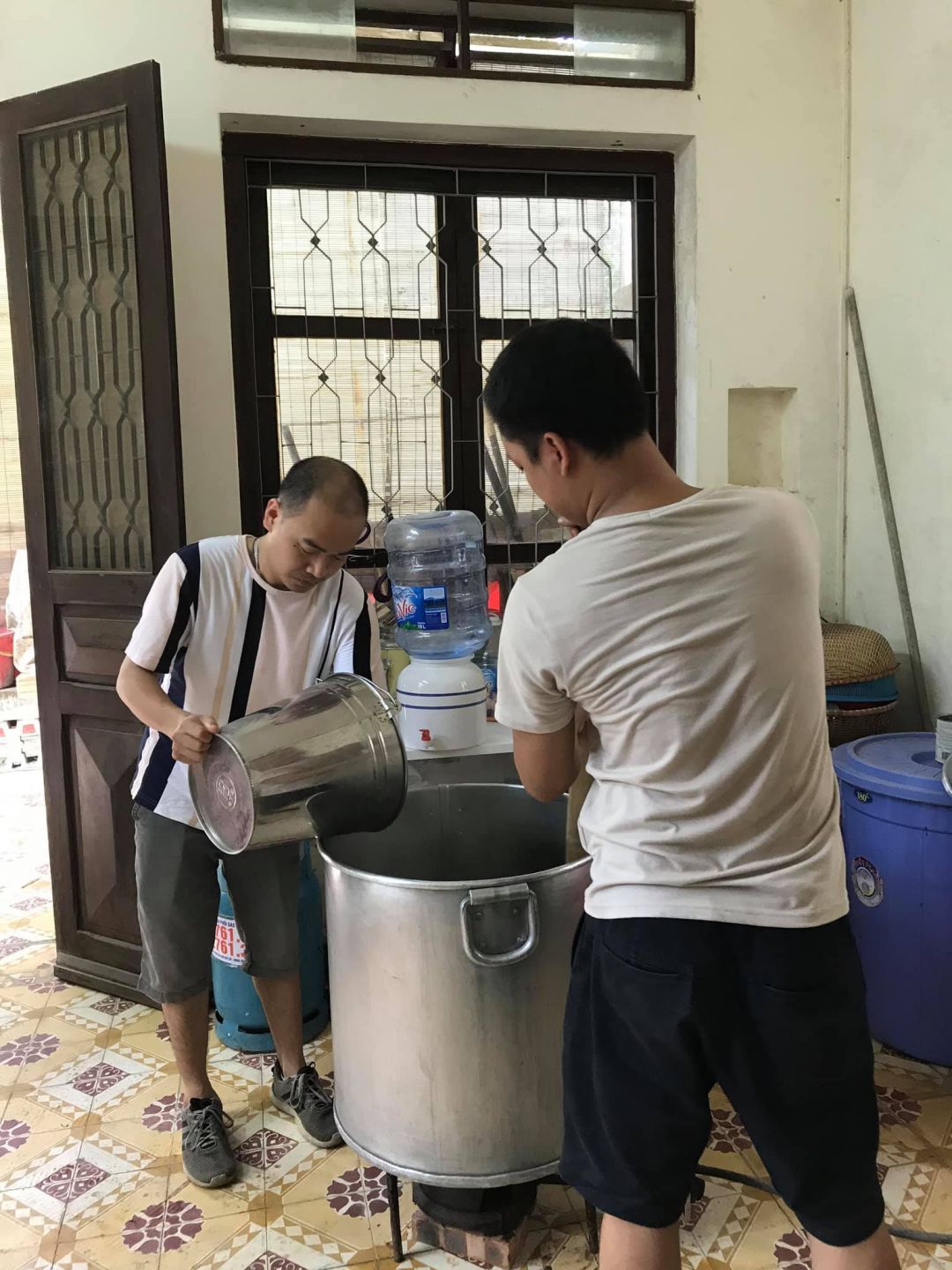 - 15h15: Múc cháo ra 6 nồi nhỏ chờ xe đến chở đi viện.
