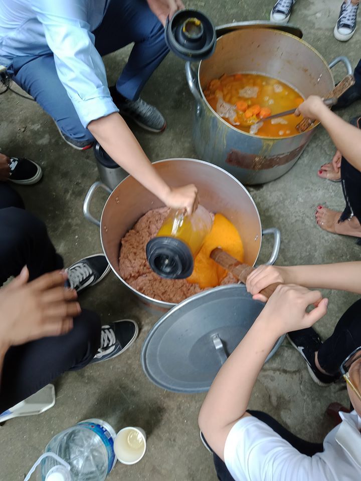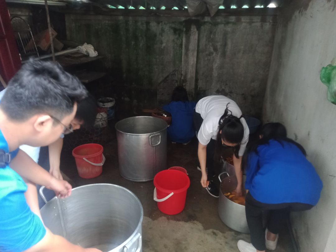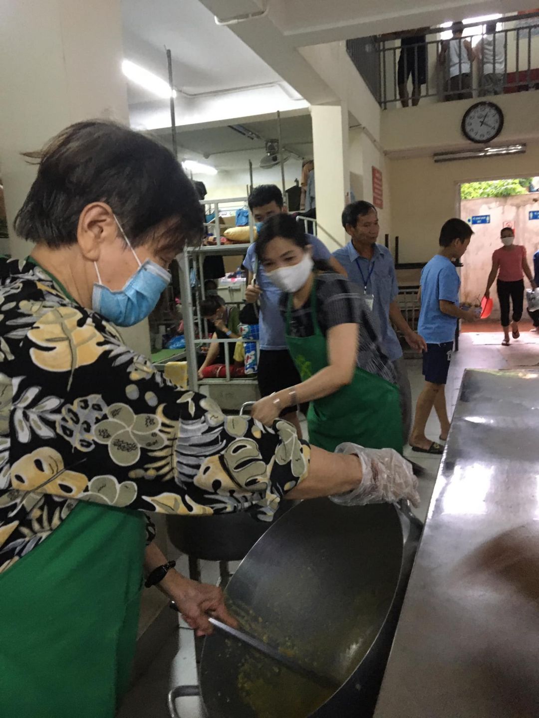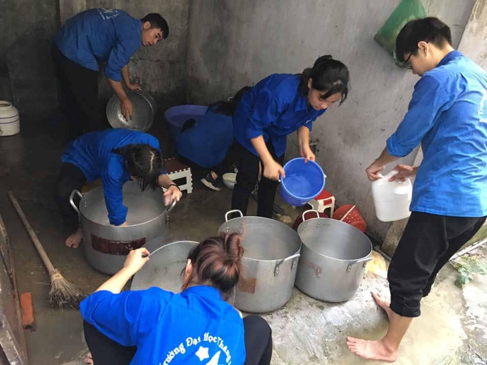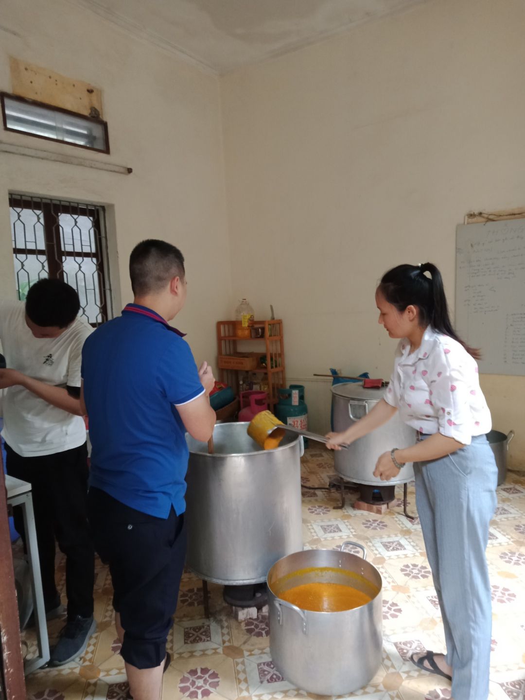 - 15h15: Múc cháo ra 6 nồi nhỏ chờ xe đến chở đi viện.