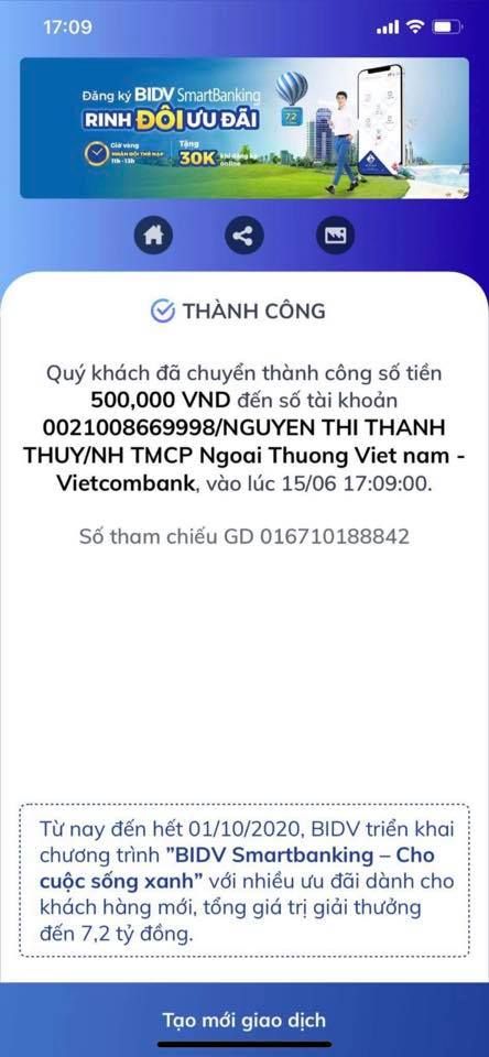 Chủ tài khoản: Nguyễn Thị Thanh Thủy